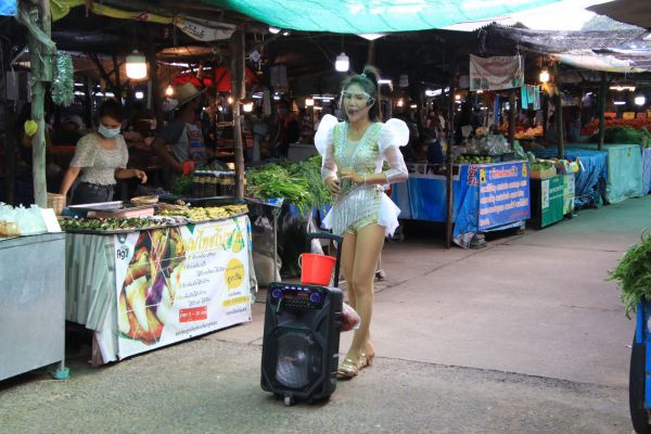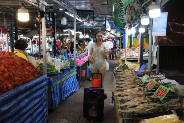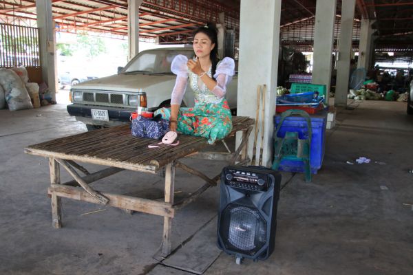 'หมอลำสาว'ไร้งานไร้เงินลากตู้ลำโพงสู้!! ร้องเพลงขอเงินตามตลาดสด