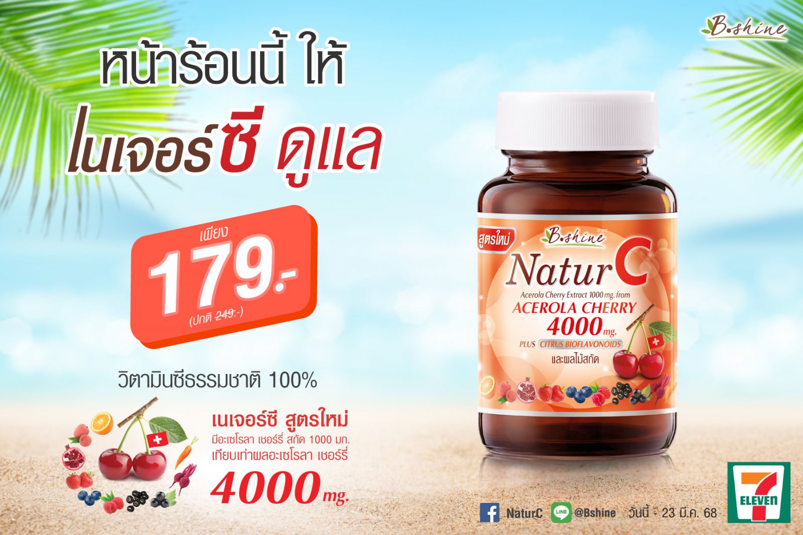 กรุงเทพฯ-“บีไชน์ เนเจอร์ซี สูตรใหม่” (B Shine NaturC) วิตามินซีจากธรรมชาติ 100 % ด้วยสารสกัดอะเซโรลา เชอร์รี่ 1000 มก. เทียบเท่ากับผลอะเซโรลาเชอร์รี่สด 4000 มก. จากสวิตเซอร์แลนด์ ไม่ระคายเคืองต่อกระเพาะและลำไส้ ไม่ทำลายสารเคลือบฟัน และยังผสานคุณค่าจากสารสกัดผลไม้หลากหลายชนิด ได้แก่ สารสกัดจากทับทิม สารสกัดจากเมล็ดลิ้นจี่ เบอร์รี่รวม และแคโรทีนอยด์ ที่อุดมไปด้วยไฟโตนิวเทรียนท์ สารต้านอนุมูลอิสระประสิทธิภาพสูง ช่วยดูแลผิวพรรณให้แลดูสดใส พร้อมเสริมภูมิคุ้มกัน เหมาะสำหรับการดูแลสุขภาพในทุกวัน