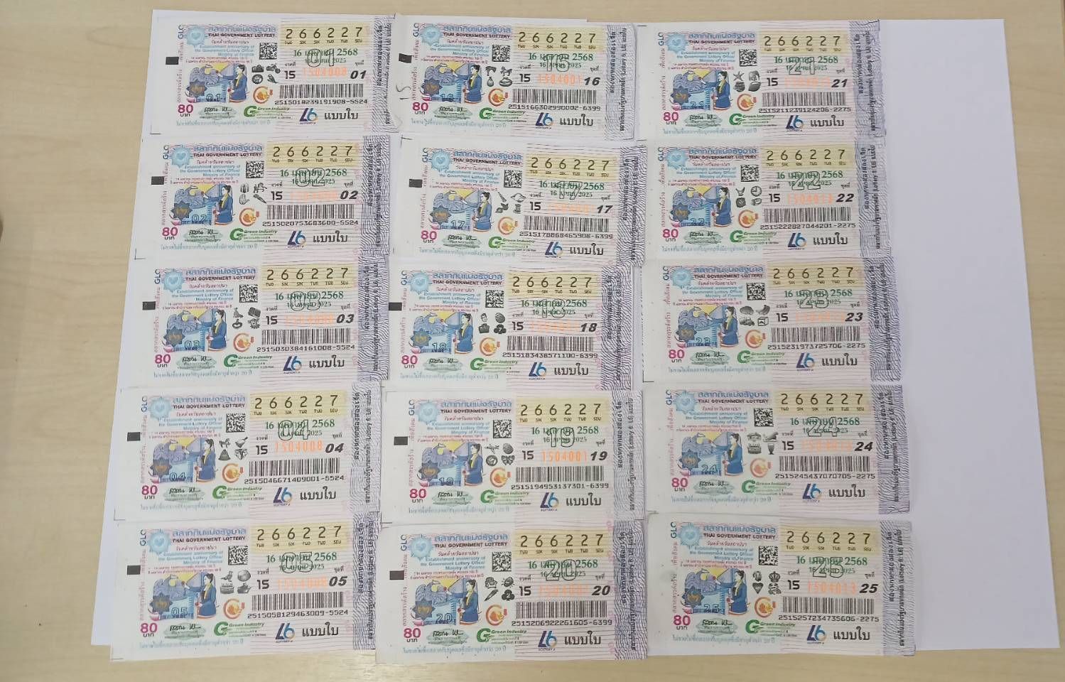 นางสาวชิโนรส "เจ๊บุ๋ม" อดีต สท.ตำบลหาดรายรี อ.เมืองชุมพร เผยถึงที่มาของรางวัลที่ 1 จำนวน 15 ใบ เงินรางวัล 90 ล้าน ว่าเมื่อวันที่ 16 เมษายน 68 ที่ผ่านมา ช่วงเวลาประมาณเกือบบ่าย 3 ขณะตนพร้อมสามีขับรถยนต์กลับจากทำธุระที่กรุงเทพมหานคร ระหว่างทางกลับบ้านที่ จ.ชุมพร ได้มีคนขายล็อตเตอรี่ซึ่งรู้จักและสนิทกัน ขายอยู่ในพื้นที่สนามบินน้ำ จ.นนทบุรี ได้ทักมาทางแอปพลิเคชันไลน์ ซึ่งตอนนั้นเกือบจะบ่าย 3 ซึ่งรางวัลใกล้จะออกแล้ว โดยบอกว่ามีสลากกินแบ่งรัฐบาลเหลืออยู่เป็นชุดใหญ่จำนวน 15 ใบ หมายเลข 266227 ซึ่งเป็นเลขไม่สวยไม่มีใครซื้อ ตนจึงตัดสินใจซื้อ และผู้ขายที่สนิทกันได้ส่งสลากกินแบ่งรัฐบาลหมายเลขดังกล่าวมาทางไลน์ให้กับตน แล้วตนก็ได้โอนเงินให้ไป และผู้ขายก็ได้ส่งสลากฯ ต้นฉบับตามหลังมาทางไปรษณีย์ให้กับตนด้วย