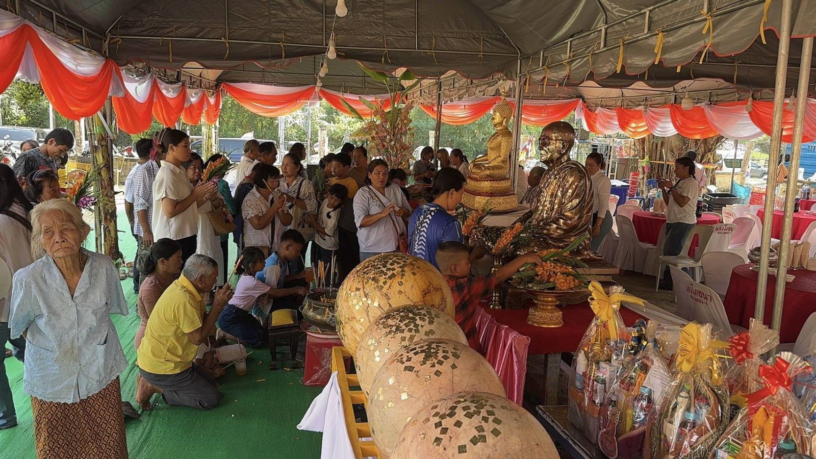 ชาวไทย-เมียนมาร่วมพิธีวางศิลาฤกษ์ อุโบสถหลังใหม่แห่ตีเลขเด็ดกันคึกคัก