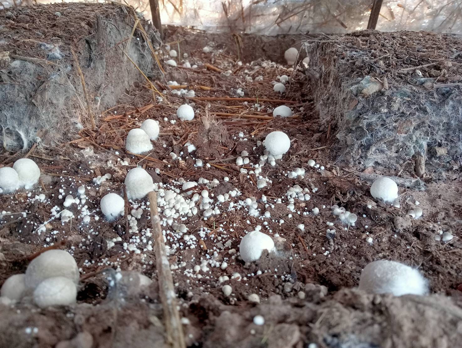 จากนั้นหาอาหารเสริมเพื่อเป็นอาหารเห็ดฟาง เช่น รำอ่อน ปุ๋ยคอก มาโรยตามช่องว่างระหว่างบล็อกและบนบล็อค และซื้อเชื้อเห็ดจากแหล่งที่เชื่อถือมาโรยตามช่องว่างระหว่างบล็อคและบนบล็อคนั้น รดน้ำใช้ชุ่มพอดี คลุมแปลงด้วยแผ่นพลาสติคใส และคลุมด้วยฟางข้าวอีกชั้นหนึ่ง เพื่อควบคลุมอุณหภูมิและป้องกันอากาศเข้า เป็นอันเสร็จสิ้นกระบวนการ โดยแปลงหนึ่งจะวางบล็อคคู่ เป็นแถวยาว ตามความเหมาะสม สำหรับตนลงทุนครั้งละ1,500 บาท จะได้แปลงเห็ดฟาง 5 แปลง