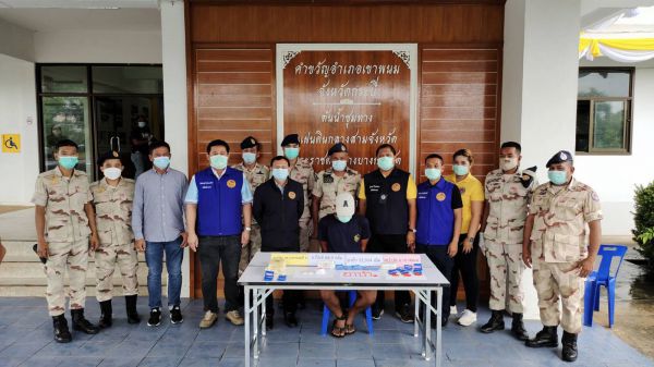 เมื่อวันที่ 10 ก.ค 64 ที่อำเภอเขาพนม จ.กระบี่นายนิรันดร์ ปราบอักษร นายอำเภอเขาพนม ผู้อำนวยการศูนย์ปฏิบัติการ ป้องกันและปราบปรามยาเสพติดอำเภอเขาพนม นายภูเมศ ไกรทอง ปลัดอำเภอ(เจ้าพนักงานปกครองชำนาญการพิเศษ) นายสนอง พรหมไชยศรี ปลัดอำเภอฝ่ายความมั่นคง และสมาชิกกองร้อย อส.อ.เขาพนมที่ 4 ได้แถลงข่าวการจับกุม นายรังสิมันตุ์หรือแอ๊ะ รักษายศ อ.29 ปี ผู้ต้องหาค้ายาเสพติดรายสำคัญ พร้อมด้วยของกลาง ยาบ้า (เมทแอมเฟตามีน)จำนวน 12,914 เม็ด ยาไอซ์ จำนวน 68.3 กรัม คิดเป็นมูลค่า กว่า 5 แสนบาท