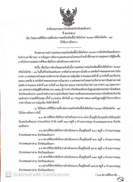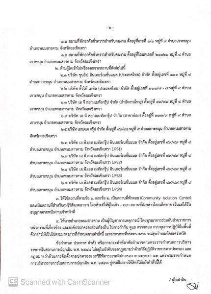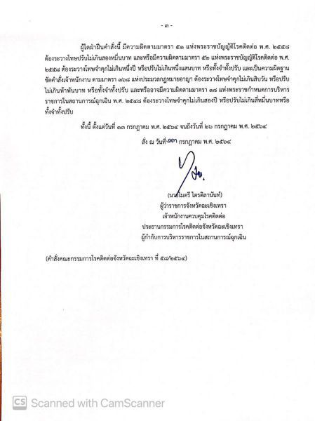 ล่าสุดคณะกรรมการโรคติดต่อ จ.ฉะเชิงเทรา ได้มีคำสั่งที่ 58/2564 ลงวันที่ 13 ก.ค.64 ให้ปิดแคมป์คนงานของบริษัทชุนยิป อินเตอร์เนชั่นแนล (ประเทศไทย) จำกัด บริษัทฮั้วไท้ เมทัล (ประเทศไทย) จำกัด บริษัท เอจี สยามเมทัลกรุ๊ป จำกัด บริษัทเอชเจเค กรุ๊ปจำกัด บริษัทเจพีเอส เมทัลกรุ๊ปอินเตอร์เนชั่นแนล จำกัด พร้อมที่พักอาศัยชั่วคราวของคนงานในบริเวณใกล้เคียง โดยทั้งหมดตั้งอยู่ในพื้นที่ ม.9 ต.เกาะขนุน อ.พนมสารคาม จ.ฉะเชิงเทรา และให้ใช้เป็นสถานที่พักคอยของผู้ติดเชื้อโควิด 19 โดยห้ามผู้ใดเข้าออกจากสถานที่ตามประกาศคำสั่งฉบับนี้