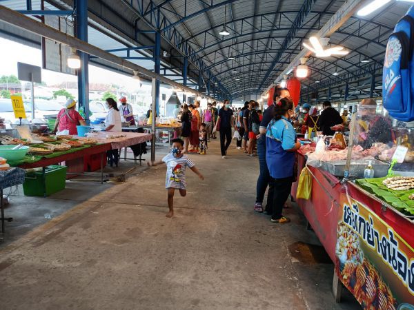 เต็มแน่นไปด้วยผู้คนท่ามกลางการประกาศบังคับใช้มาตรการควบคุมโรคในพื้นที่ควบคุมสูงสุด ของคณะกรรมการควบคุมโรคติดต่อ จ.ฉะเชิงเทรา เป็นวันที่ 2 ระหว่างวันที่ 12-25 ก.ค.64 โดยที่ทางผู้จัดตลาดนัด ได้มีการจำกัดจุดทางเดินเข้าออก และมีจุดตรวจวัดอุณหภูมิพร้อมจุดล้างมือก่อนเข้าไปจับจ่ายซื้อสินค้ายังภายในไว้บริการประชาชนตามข้อกำหนด