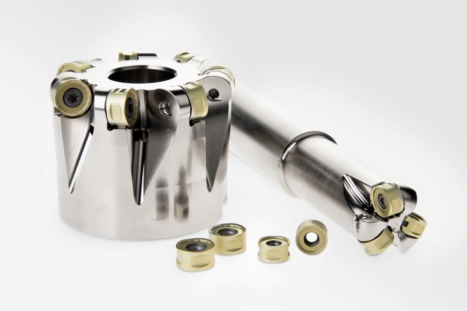 - SRN Series สำหรับงานลอกแบบ (Copy Milling) – เม็ดมีดทรงกลมสองด้าน มีมุมใช้งานได้ถึง 8 มุม ลดต้นทุนได้สูงสุดถึง 20% ให้การตัดที่นุ่มนวลและเสถียร เหมาะกับอุตสาหกรรมที่ต้องการประสิทธิภาพสูง เช่น อากาศยานและพลังงาน