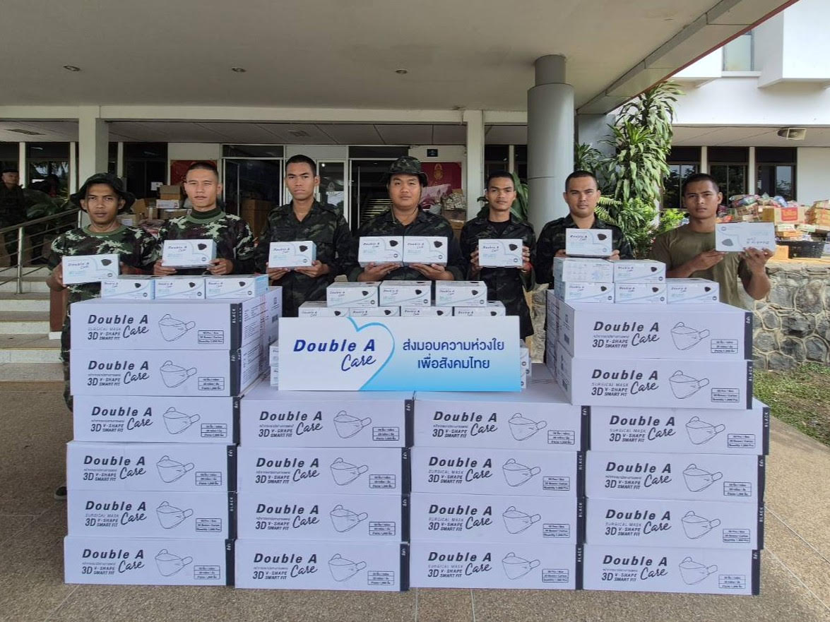 กรุงเทพฯ-ดั๊บเบิ้ล เอ ห่วงใยสุขอนามัยของทหารชายแดนไทย-กัมพูชา มอบหน้ากากอนามัยทางการแพทย์ Double A Care รุ่น 3D V-SHAPE Smart FIT สีดำ จำนวน 20,000 ชิ้น ให้แก่ มณฑลทหารบกที่ 25 ค่ายวีรวัฒน์โยธิน ต.นอกเมือง อ.เมืองสุรินทร์ จ.สุรินทร์ โดยหน้ากากอนามัยฯ นี้สามารถกรองเชื้อไวรัสและแบคทีเรียได้ 99% เพื่อสุขอนามัยที่ดี พร้อมส่งกำลังใจให้ทหาร และเจ้าหน้าที่ทุกภาคส่วนที่ร่วมกันปฏิบัติหน้าที่ดูแลความปลอดภัยของประเทศชาติและประชาชนคนไทยทุกคน