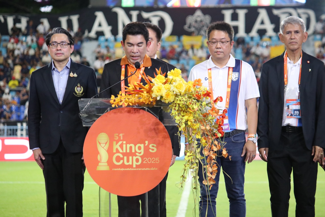 กาญจนบุรี-วันที่ 4 กันยายน 2568 เวลา 18.30 น. ณ สนามกีฬากลางจังหวัดกาญจนบุรี (สนามกลีบบัว) อำเภอเมือง จังหวัดกาญจนบุรี นายสุรพงษ์ ปิยะโชติ รัฐมนตรีช่วยว่าการกระทรวงคมนาคม เป็นประธานเปิดการแข่งขันฟุตบอลชิงถ้วยพระราชทานคิงส์คัพ ครั้งที่ 51 โดยมีนายอธิสรรค์ อินทร์ตรา ผู้ว่าราชการจังหวัดกาญจนบุรี กล่าวต้อนรับ และนายประวัติ กิจธรรมกูลนิจ นายกองค์การบริหารส่วนจังหวัดกาญจนบุรี กล่าวรายงานถึงการจัดงานครั้งนี้ ท่ามกลางคณะผู้บริหาร หัวหน้าส่วนราชการ และประชาชนจำนวนมากที่เข้าร่วมให้กำลังใจแก่นักกีฬา