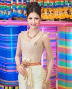 3. ชุดไทยดุสิต สีครีม ถูกออกแบบให้กับ คุณหมูแฮม โชตินภา แก้วจรูญ ในช่วงเปิดตัวเริ่มการเข้ากองประกวดนางสาวไทยประจำปี 2568