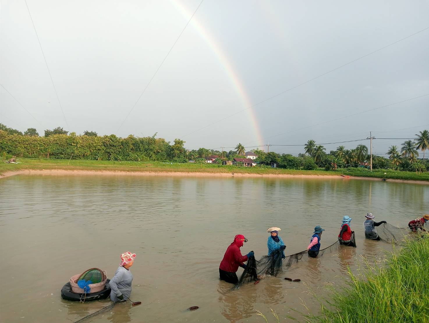 ชาวบ่อกุ้งกาฬสินธุ์ผวาน้ำป่าดงระแนง ไหลเข้าท่วมบ่อกุ้งเร่งจับก่อนเสียหาย