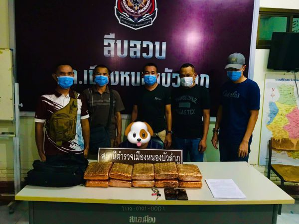 ชุดสืบสวนหนองบัวฯรวบพ่อค้ากัญชา ยึดกัญชาอัดแท่งได้10กิโลกรัม