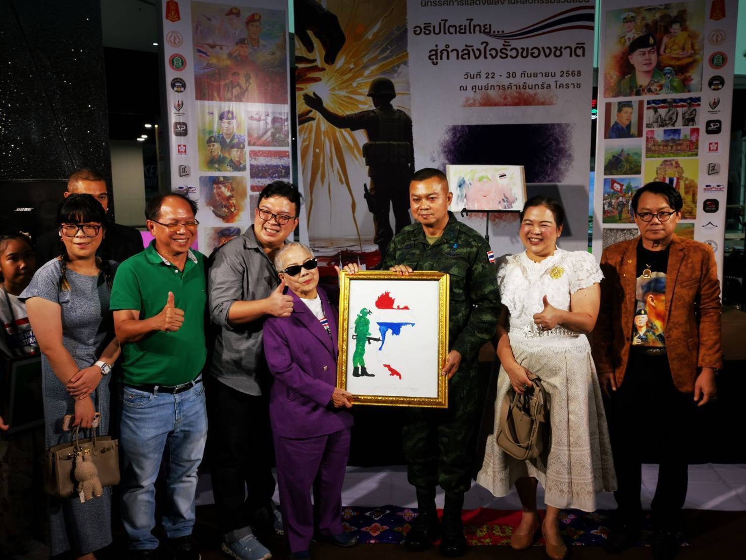 นครราชสีมา-บรรยากาศงานศิลปกรรมร่วมสมัยหัวข้อ “อธิปไตยไทย-ส่งกำลังใจรั้วของชาติ” จัดขึ้นระหว่างวันที่ 22–30 กันยายน 2568 เต็มไปด้วยความประทับใจ โดยเมื่อวานนี้มีไฮไลท์สำคัญคือการประมูล “ภาพเขาภูมะเขือ” ซึ่งเป็นผลงานที่สะท้อนเอกลักษณ์ทางวัฒนธรรมและความหมายเชิงสัญลักษณ์ของการทวงคืนสมบัติอันล้ำค่าของแผ่นดิน
