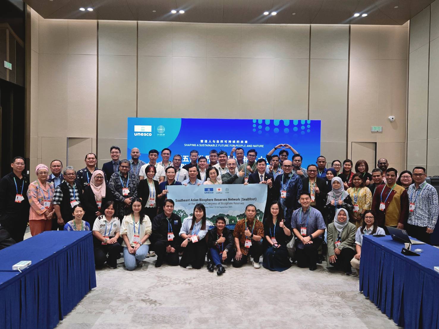 กรุงเทพฯ-สถาบันวิจัยวิทยาศาสตร์และเทคโนโลยีแห่งประเทศไทย โดย ศูนย์เชี่ยวชาญนวัตกรรมพลังงานสะอาดและสิ่งแวดล้อม (ศนพ.) มอบ นางสาวกนกทิพย์ สมศิริ นักทดลองวิทยาศาสตร์วิจัย ศนพ.) ประจำสถานีวิจัยสิ่งแวดล้อมสะแกราช เป็นผู้แทนเข้าร่วมเวที 5th World Congress of Biosphere Reserves (WCBR) เมื่อวันที่ 22 – 26 กันยายน 2568 ณ นครหางโจว สาธารณรัฐประชาชนจีน พร้อมด้วยผู้แทนจากกรมอุทยานแห่งชาติ สัตว์ป่า และพันธุ์พืช กรมทรัพยากรทางทะเลและชายฝั่ง และมูลนิธิผืนป่าในใจเรา โดยการประชุมครั้งนี้จัดขึ้นทุกๆ 10 ปีเพื่อทบทวนและกำหนดทิศทางยุทธศาสตร์โครงการMAB ของยูเนสโก