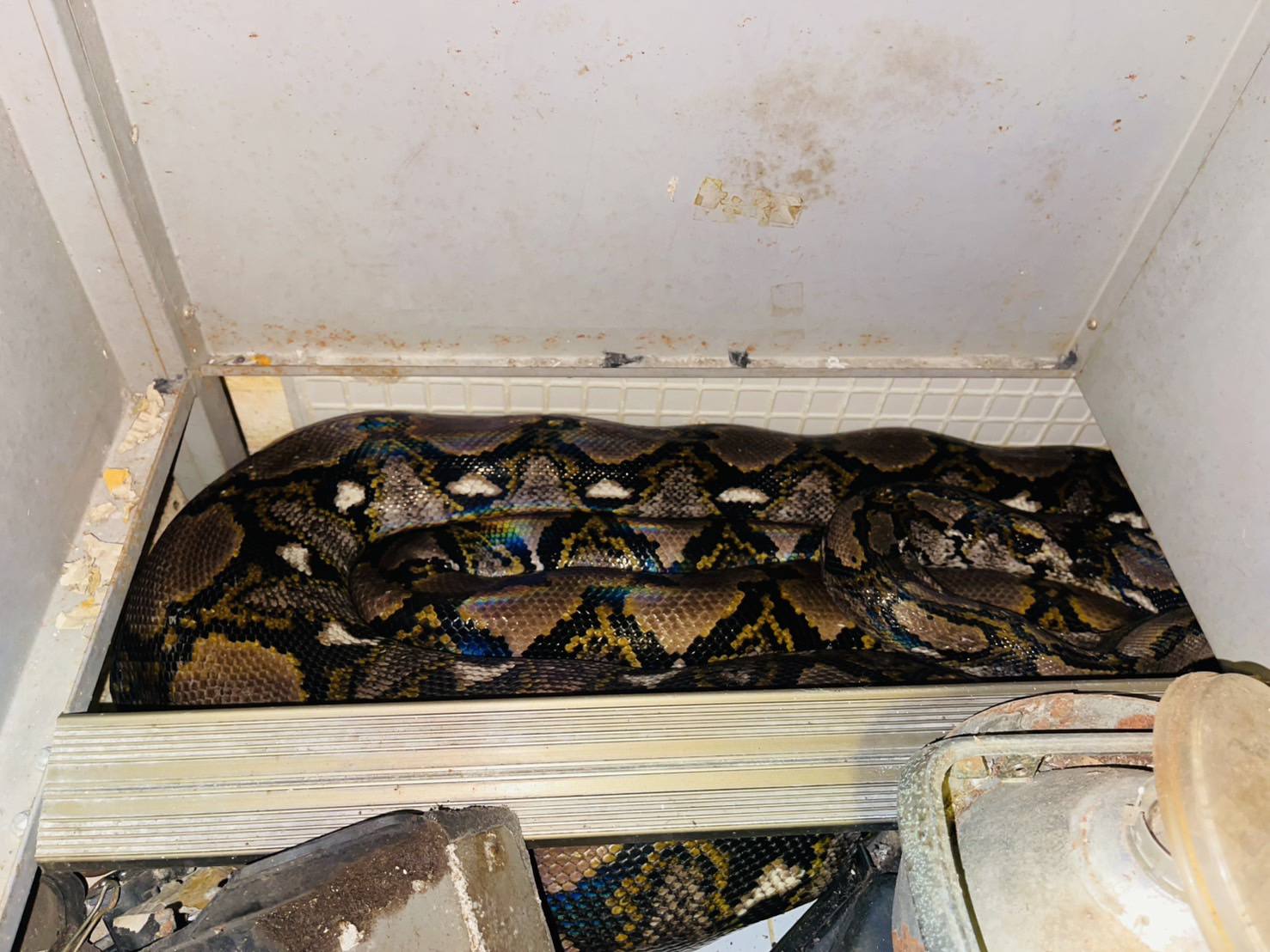 แต่จากที่งูดังกล่าวมีขนาดใหญ่มากจึงมีแรงมาก กู้ภัยฯ 2 คนจับไม่ไหวต้องตามมาเพิ่มอีก 1 คน จึงสามารถช่วยกันจับได้โดยหน่วยกู้ภัยฯบอกเป็นงูหลามไม่ใช่งูเหลือม และได้นำใส่ในกระป่องแทนใส่ถุงปุ๋ยเพราะตัวใหญ่มากใส่ไม่ได้นำไปปล่อยคืนสู่ธรรมชาติ