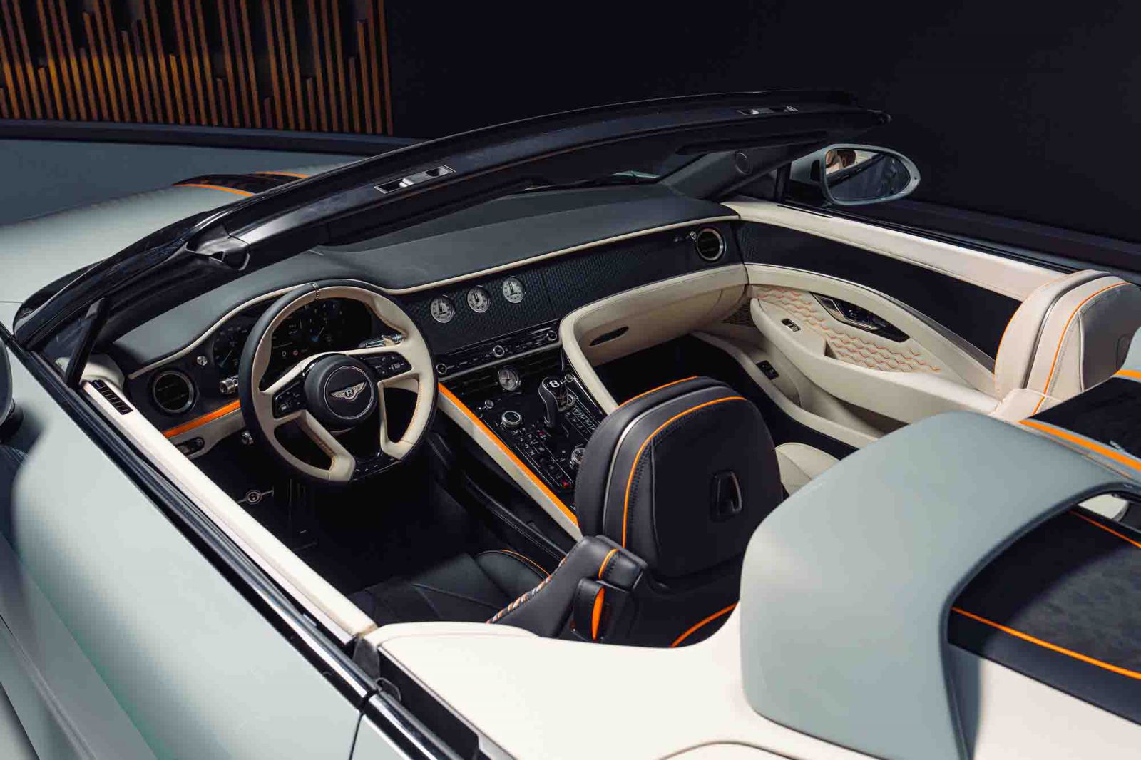 เบาะโดยสารฝั่งคนขับตกแต่งด้วยหนังเฉดสีดำ Beluga Black Leather และ Alcantara พร้อมการตกแต่งด้วยลวดลาย Batur จากเบนท์ลีย์ มูลินเนอร์และแผงประตูที่มาพร้อมกับการเดินด้ายเฉดสีขาว Linen และเฉดสีส้ม Mandarin โดยมีการตกแต่งด้วยเฉดสีส้ม Mandarin บริเวณเบาะโดยสารฝั่งคนขับทอดยาวจากคอนโซลกลางตลอดแผงหน้าปัด และต่อเนื่องไปใต้ราวประตูแบบไร้รอยต่อ