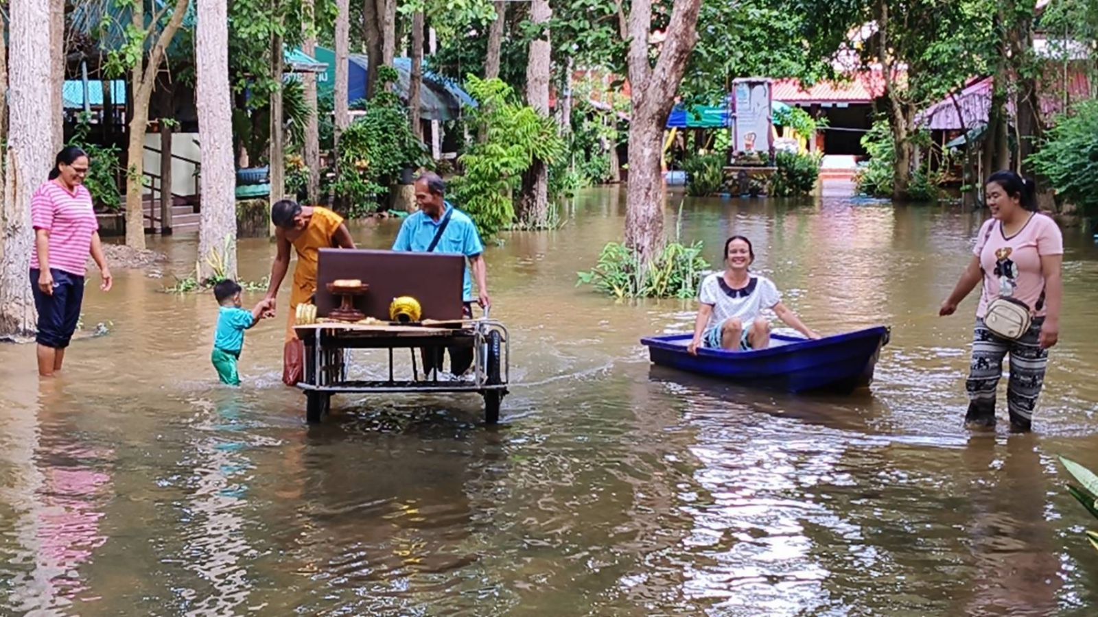 พระ-เณรผวาพายุบัวลอยทำวัดจมบาดาล ชาวบ้านแห่ช่วยหอบจีวรขึ้นที่สูง