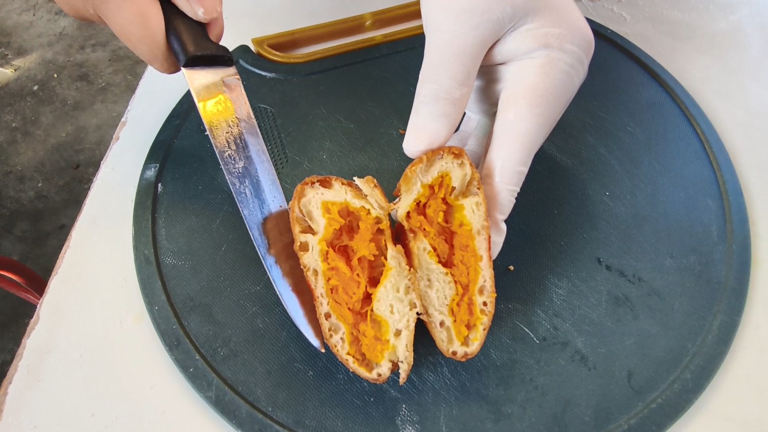 นายภานุคล โหรานุกิจ กล่าวว่า สำหรับสูตรซาลาเปาทอด ได้มาจากคุณแม่ของแฟน โดยขายมานานตั้งแต่เมื่อช่วงโควิด 19 และหยุดไปพักนึง ก็ได้กลับมาขายใหม่ ขายมาประมาณ 4-5 ปีแล้ว สำหรับความอร่อยของซาลาเปาทอด อยู่ที่แป้ง ส่วนไส้ ทั้งหมดเราทำเอง จะเป็นไส้ไก่ผัดเห็ด สังขยาก็ทำเองกวนเอง ไส้ทุกอย่างทำเองหมด มีไส้ไก่ผัดเห็ด ไส้สังขยา ไส้ฝอยทอง ไส้ถั่วแดง ไส้พิซซ่า ไส้เผือก โดยขายลูกละ 7 บาท 3 ลูก 20 บาท ทางด้านลูกค้า ช่วงปิดเทอมเปิดเทอม จะขายดีหน่อย แต่ในช่วงนี้ปิดเทอม ฝั่งนี้รถมอเตอร์ไซค์จะไม่ค่อยผ่าน จะมีแต่รถยนต์เสียมากกว่า