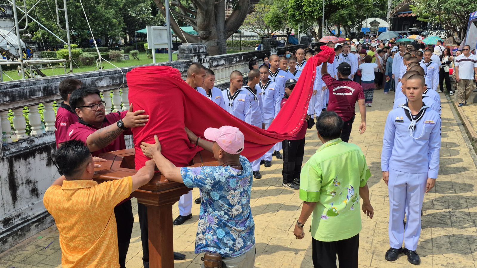 เมื่อเวลา 14.30 น.วันที่ 12 ต.ค.68 นาย สยาม ศิริมงคล ผู้ว่าราชการจังหวัดสมุทรปราการ เป็นประธานอัญเชิญผ้าแดงห่มองค์พระสมุทรเจดีย์ ทำพิธีทักษิณาวรรต รอบองค์พระสมุทรเจดีย์ 3 รอบ เพื่อสักการะพระบรมสารีริกธาตุ 12 องค์ ขององค์สมเด็จพระสัมมาสัมพุทธเจ้า ซึ่งบรรจุอยู่ภายในองค์พระสมุทรเจดีย์ ก่อนที่จะส่งมอบให้กับผู้ประกอบพิธีห่มผ้าองค์พระสมุทรเจดีย์ ซึ่งเป็นสมาชิกในตระกูลรุ่งแจ้ง นำขึ้นไปห่มบนคอระฆังขององค์พระสมุทรเจดีย์ โดยมีหัวหน้าส่วนราชการ ทั้งภาครัฐ ภาคเอกชนและประชาชน ร่วมกันประกอบพิธีห่มผ้าองค์พระสมุทรเจดีย์ สำหรับพิธีดังกล่าวจะจัดขึ้นเป็นประจำทุกปี ในวันแรม 5 ค่ำ เดือน 11 ซึ่งปีนี้ตรงกับวันที่ 12 ต.ค.68