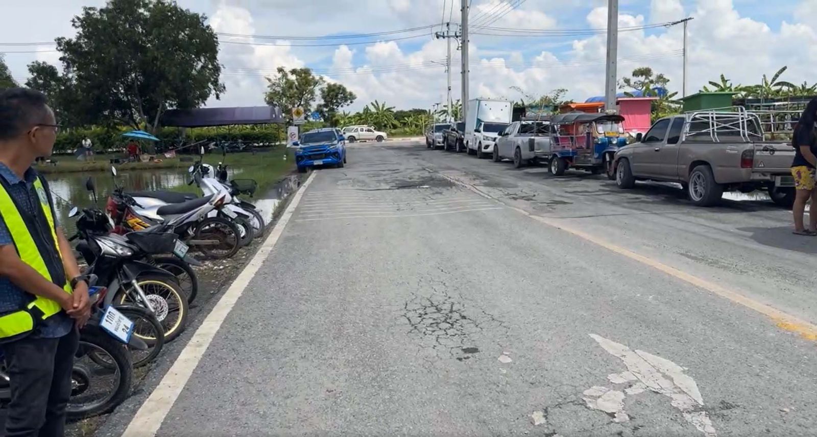 รองผู้ว่าฯ วิศณุ กล่าวว่า คุ้มเกล้าซอย 16 (ร่มเกล้าซอย 17) บริเวณทางเข้าโรงเรียนเตรียมอุดมศึกษาพัฒนาการสุวรรณภูมิ เขตลาดกระบัง ได้รับแจ้งว่า ถนนทางเข้าโรงเรียนมีหลุมบ่อเยอะ ซึ่งเดิมทีซอยนี้เป็นบ่อปลา ดินถนนจึงไม่แน่นและเกิดการทรุดได้ง่าย จึงได้ให้สำนักงานก่อสร้างและบูรณะดำเนินการแก้ไข โดยวันนี้หากฝนไม่ตกก็จะเดินหน้าปูยางถนนต่อเนื่องทั้งวัน รวมถึงวันพรุ่งนี้อีก 1 วัน ก็น่าจะปูได้ตลอดทั้งเส้น