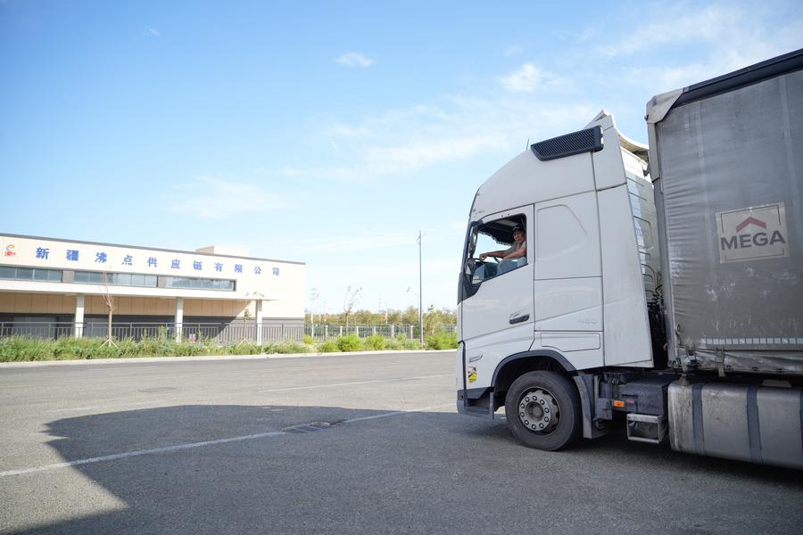 (แฟ้มภาพซินหัว : ซายัต คนขับรถบรรทุกชาวคาซัคสถาน รอรับสินค้าขึ้นรถที่สวนอุตสาหกรรมอีคอมเมิร์ซข้ามพรมแดนอาลาซานโข่ว เขตปกครองตนเองซินเจียงอุยกูร์ทางตะวันตกเฉียงเหนือของจีน วันที่ 11 ก.ย. 2025)