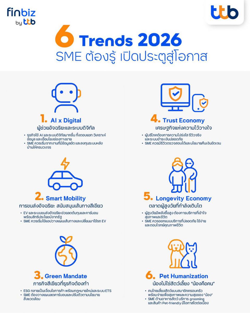 finbiz ttbเปิด6เทรนด์ธุรกิจSMEปี69 ก้าวสู่ยุคใหม่ของธุรกิจที่ฉลาด-เขียว
