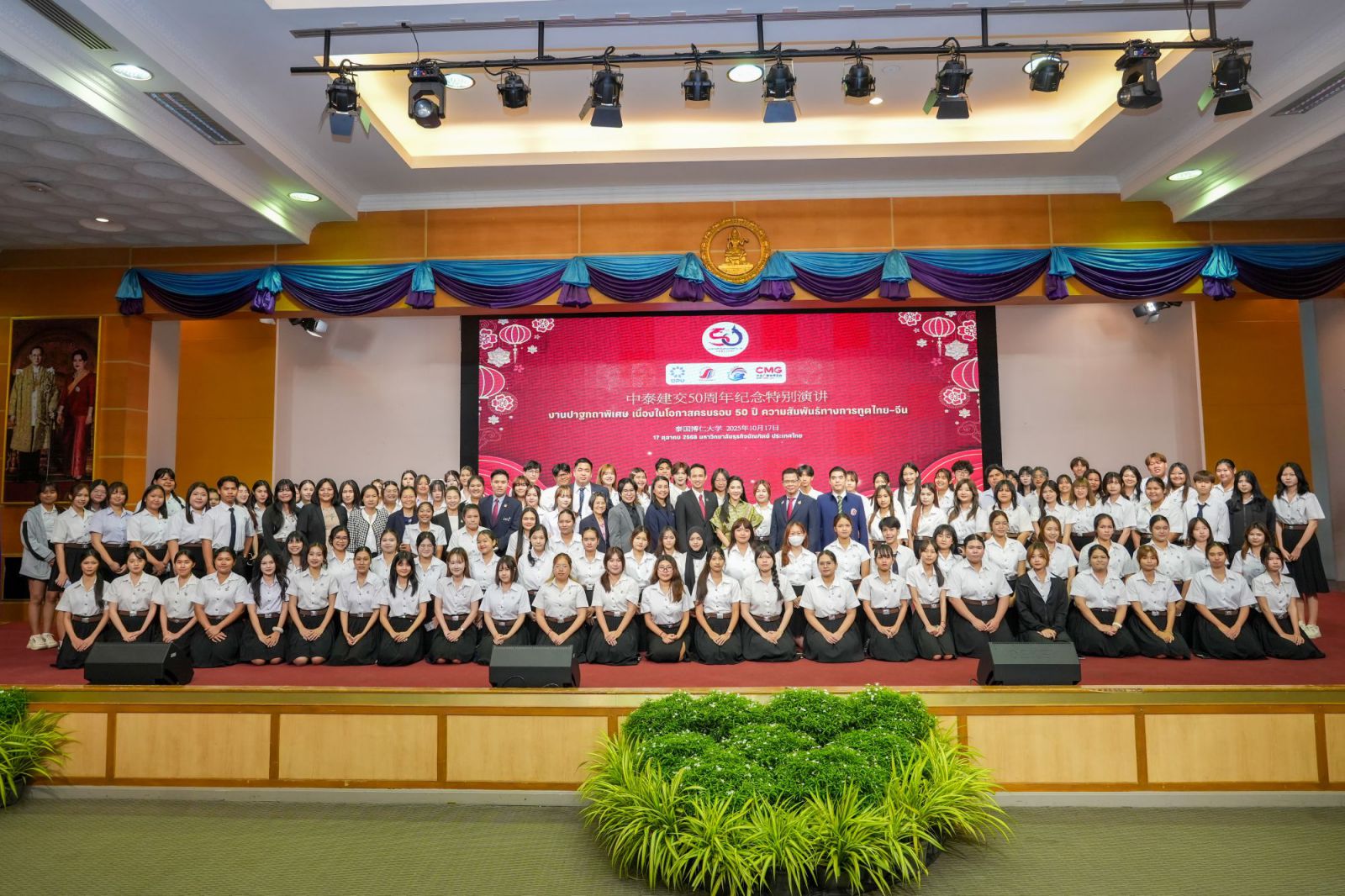เมื่อวันที่ 17 ตุลาคม ที่ผ่านมา สมาคมผู้สื่อข่าวไทย–จีน ร่วมกับสถาบันสื่อและบริหารธุรกิจไทย–จีน มหาวิทยาลัยธุรกิจบัณฑิตย์ (DPU) และ China Media Group (CMG) ร่วมกันจัด งานปาฐกถาพิเศษ เนื่องในโอกาสครบรอบ 50 ปี ความสัมพันธ์ทางการทูตไทย–จีน หัวข้อ “ความสัมพันธ์ ไทย-จีน กับธรรมาภิบาลโลก” โดยได้รับเกียรติจาก นายจาง เจี้ยนเว่ย เอกอัครราชทูตสาธารณรัฐประชาชนจีนประจำประเทศไทย เป็นองค์ปาฐกในครั้งนี้ และนายชิบ จิตนิยม รองประธานคณะกรรมาธิการการต่างประเทศ วุฒิสภา กล่าวปาฐกถา หัวข้อ “ธรรมาภิบาลโลก อนาคตแห่งสันติภาพร่วมกัน” โดยมี ดร.กำพล มหานุกูล นายกสมาคมผู้สื่อข่าวไทย-จีน และ ดร.ดาริกา ลัทธพิพัฒน์ อธิการบดีมหาวิทยาลัยธุรกิจบัณฑิตย์ (DPU) ร่วมต้อนรับ พร้อมด้วยผู้บริหาร คณาจารย์ สื่อมวลชน นักศึกษาของ DPU และผู้เรียนหลักสูตรผู้บริหารธุรกิจไทย–จีน (บทจ.) ร่วมรับฟัง ณ ห้องประชุมปรีดี พนมยงค์ DPU