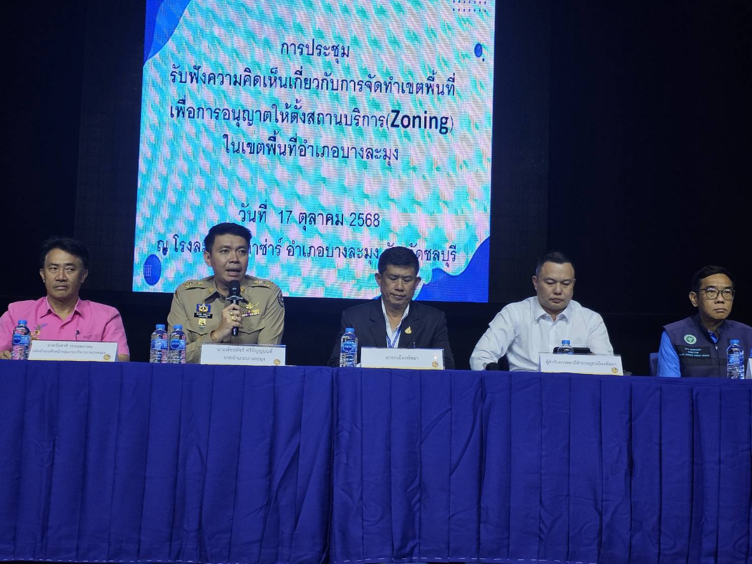 ชลบุรี-นายอำเภอบางละมุงเปิดเวทีรับฟังความคิดเห็น เดินหน้าปรับโซนนิ่งสถานบริการ จ่อขยายพื้นที่ให้สอดรับสถานบริการที่มีอยู่จริงเตรียมเสนอ ครม. รองรับการท่องเที่ยวพัทยา