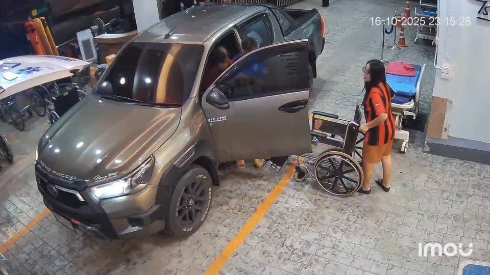เวลา 23.15 น. รถกระบะ4ประตู ยี่ห้อโตโยต้า สีน้ำตาล คันที่จอดปิดท้ายรถพยาบาล นำส่งผู้ป่วยหญิงวัย 69ปี รู้สึกตัวดี ถามตอบรู้เรื่อง มีอาการเวียนศีรษะตาลาย ญาติเข็นผู้ป่วยหญิงรายนั้นเข้าห้องฉุกเฉินเอง และได้พบกับพยาบาลหัวหน้าเวรห้องฉุกเฉินซึ่งกำลังจัดเตรียมเอกสารและประสานการส่งต่อผู้ปวยไป