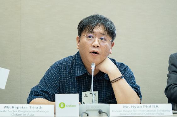 ฮย็อนพิล นา กรรมการบริหาร Korean House for International Solidarity (KHIS)แบ่งปันบทเรียนจากประสบการณ์ตรงของเกาหลีกับกลไกศูนย์ติดต่อประสานงานแห่งชาติ (National Contact Point – NCP) ของ