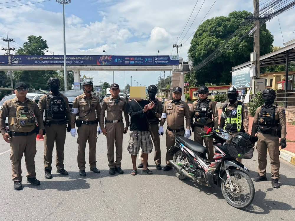 ระหว่างปฏิบัติหน้าที่ เจ้าหน้าที่สังเกตเห็นชายต้องสงสัยขับรถจักรยานยนต์ฮอนด้าเวฟ 110 เข้ามาในด่าน มีท่าทีพิรุธ พูดจาวกวนคล้ายคนเสพยา จึงเรียกตรวจค้นอย่างละเอียด พบยาบ้าจำนวน 38 เม็ดซุกอยู่ในกระเป๋ากางเกงด้านหลัง พร้อมเงินสด 15,000 บาท จึงควบคุมตัวไว้สอบสวน