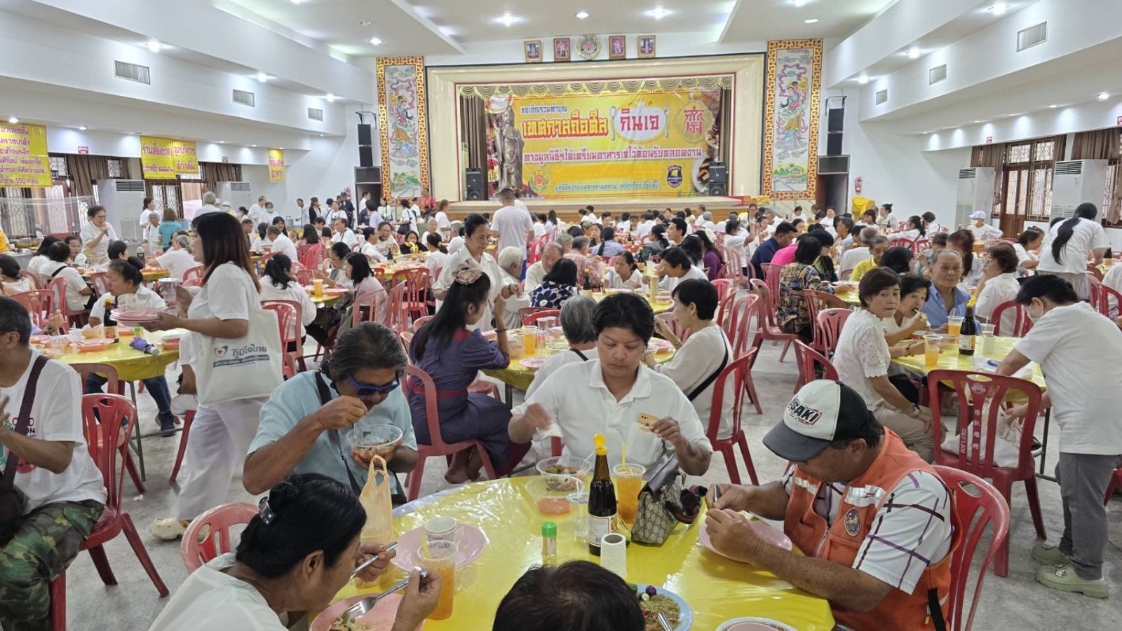 เมื่อวันที่ 21 ตุลาคม 2568 ที่มูลนิธิสว่างเมตตาธรรมสถานนครราชสีมา บรรยากาศงานเทศกาลกินเจเป็นไปอย่างคึกคัก โดยมี นายเทวัญ ลิปตพัลลภ อดีตรัฐมนตรีช่วยว่าการกระทรวงศึกษาธิการ พร้อมด้วย นายกิตติศาสตร์ ลิ้มประยูรสวัสดิ์ ประธานมูลนิธิสว่างเมตตาธรรมสถานนครราชสีมา และคณะกรรมการมูลนิธิ ร่วมประกอบพิธีสวดมนต์ถวายพุทธบูชา (โหงวก่ง) ก่อนเปิดให้ประชาชนร่วมรับประทานอาหารเจภายในห้องประชุมของมูลนิธิ