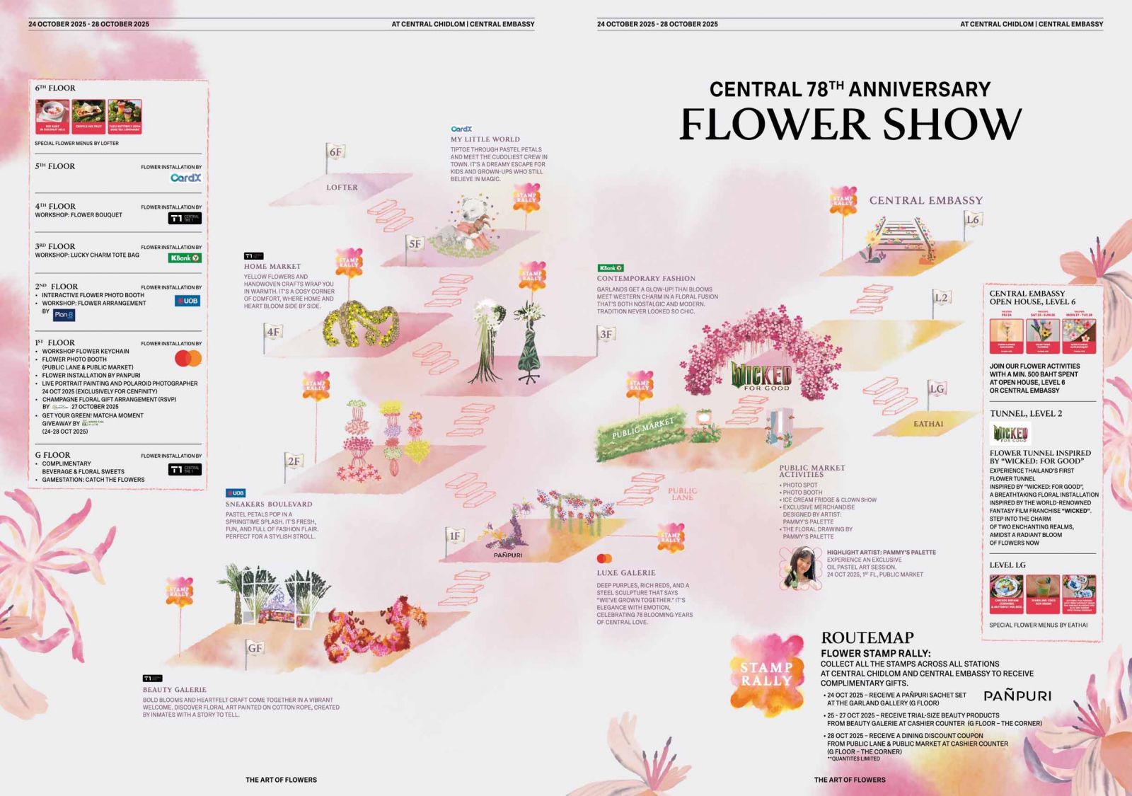 - ภารกิจ “FLOWER STAMP RALLY” สุดสนุกในทุกชั้น กับภารกิจสะสมแสตมป์ดอกไม้ครบ 8 จุด (ชั้น G – 5 ห้างเซ็นทรัลชิดลม และชั้น 6 เซ็นทรัล เอ็มบาสซี)