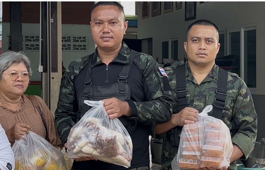 ศรีสะเกษ-เมื่อวันที่ 23 ตุลาคม 2568 ที่โรงครัวบริเวณบ้านบึงมะลู ตำบลภูมิซรอล อำเภอกันทรลักษ์ จังหวัดศรีสะเกษ นายพาสิทธิ์ คีรีชล ผู้ใหญ่บ้าน หมู่ 5 บ้านกระทิง ต.พวง อ. เขาคิชฌกูฏ จ.จันทบุรี นำชาวจันทบุรีจำนวน 40 คน ร่วมกันทำก๋วยเตี๋ยวผัดเส้นจันทบุรี จำนวน 2000 กล่อง ข้าวเหนียวหมู ข้าวเหนียวหน้ากุ้ง กล้วยฉาบ กระเบื้อง ยางรถยนต์และน้ำดื่มจำนวน 300 แพ็ค นำส่งมอบให้ทหารบก ทหารพรานและตชด.ที่รักษาอธิปไตยตามแนวชายแดนไทย-กัมพูชา ตลอดแนวชายแดนนาย ตั้งแต่ฐานภูผีจนถึงภูมะเขือสำหรับบรรยากาศการส่งมอบอาหารและสิ่งของก็เต็มไปด้วยรอยยิ้มของชาวจันทบุรีที่นำของมาให้และรอยยิ้มของตำรวจตระเวนชายแดนและทหารบก ทหารพราน ในพื้นที่ที่ได้รับมอบสิ่งของ