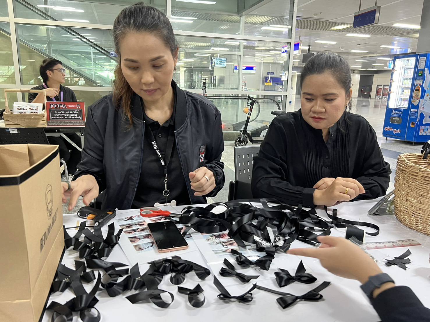 กิจกรรมนี้ จัดขึ้นเพื่อเปิดโอกาสให้ประชาชนทุกคนได้มีส่วนร่วมในการถวายความอาลัยและแสดงออกถึงความจงรักภักดี โดยบริษัทฯ ได้จัดเตรียมวัสดุอุปกรณ์สำหรับประดิษฐ์ริบบิ้นและน้ำดื่ม พร้อมทีมเจ้าหน้าที่ให้คำแนะนำและอำนวยความสะดวกแก่ผู้เข้าร่วมกิจกรรมทุกคน สำหรับริบบิ้นที่ประดิษฐ์เสร็จแล้ว จะถูกนำไปมอบให้แก่ประชาชน และผู้มาใช้บริการ เพื่อใช้ติดบนเครื่องแต่งกาย เป็นสัญลักษณ์แห่งความอาลัย และน้อมรำลึกถึงพระมหากรุณาธิคุณของพระองค์ท่านที่ทรงมีต่อพสกนิกรชาวไทย