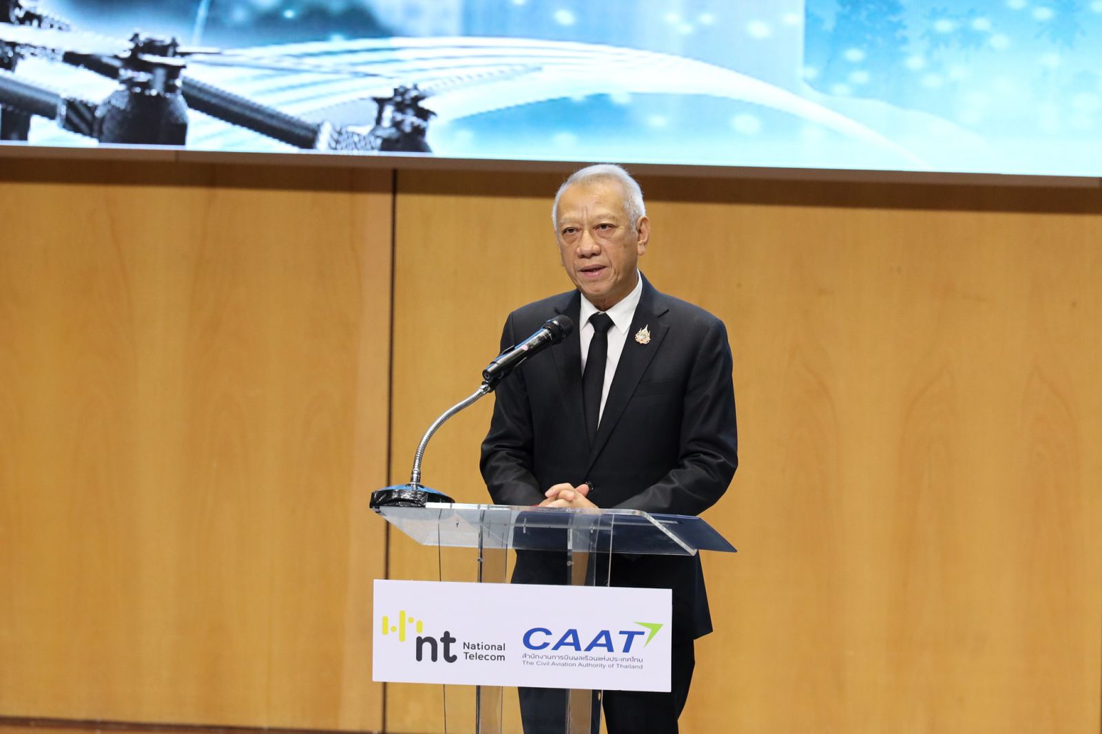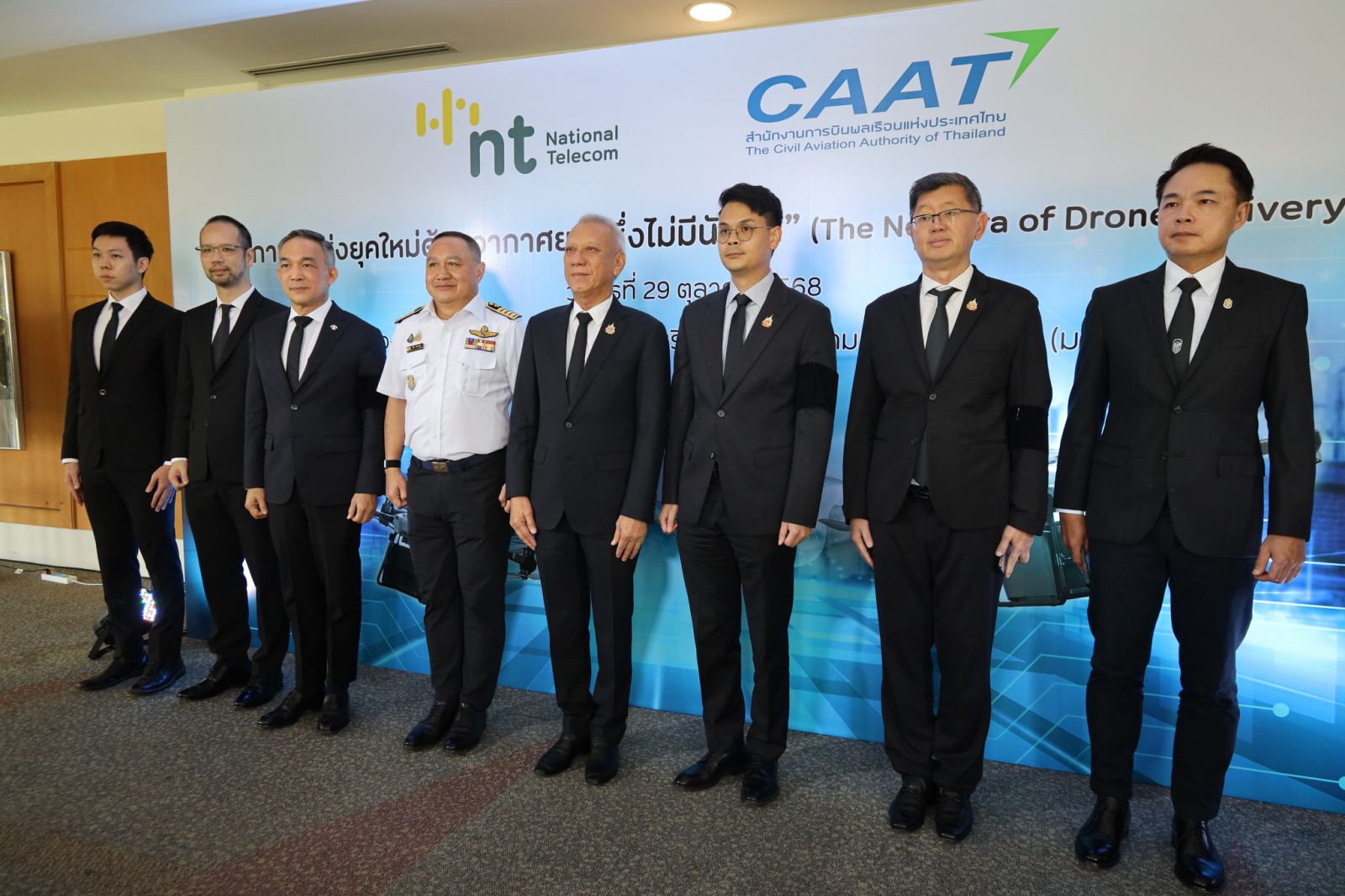 นายพิพัฒน์ รัชกิจประการ รองนายกรัฐมนตรีและรัฐมนตรีว่าการกระทรวงคมนาคม และนายไชยชนก ชิดชอบ กระทรวงดิจิทัลเพื่อเศรษฐกิจและสังคม (ดีอีเอส) ร่วมเป็นประธานเปิดงาน “การขนส่งทางอากาศยุคใหม่ด้วยอากาศยานซึ่งไม่มีนักบิน (The New Era of Drone Delivery)” เพื่อส่งเสริมนวัตกรรมขนส่งทางอากาศด้วยโดรนในเชิงพาณิชย์ โดยมี พลอากาศเอก มนัท ชวนะประยูร ผู้อำนวยการสำนักงานการบินพลเรือนแห่งประเทศไทย (CAAT) พันเอก สรรพชัย หุวะนันทน์ กรรมการผู้จัดการใหญ่ บริษัท โทรคมนาคมแห่งชาติ จำกัด (มหาชน) (NT) พร้อมด้วยผู้บริหารภาครัฐ ภาคเอกชน และผู้ประกอบการด้านเทคโนโลยีเข้าร่วมอย่างคับคั่ง เมื่อวันที่ 29 ตุลาคม 2568 ณ ห้อง Auditorium อาคาร 9 บริษัท โทรคมนาคมแห่งชาติ จำกัด (มหาชน)