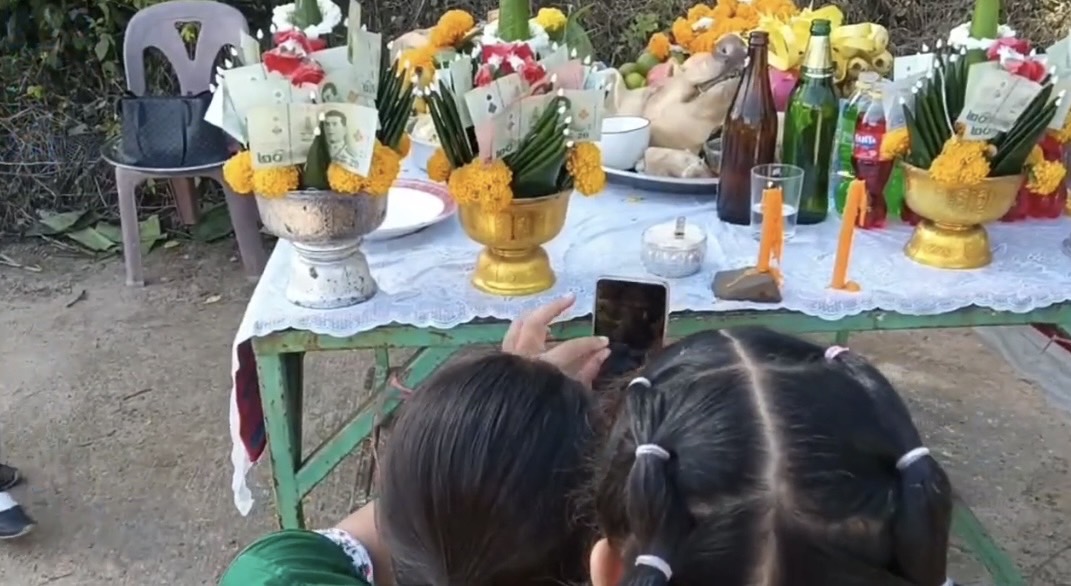 ขณะเดียวกันได้มีการทำพิธีจุดธูปขอขมาแก้บนด้วยอาหารหวานคาวผลไม้ 9 อย่าง นั้นเพื่อนของ เจ๊จ่อย คนนึงมีอาการร้องไห้ขึ้นมาอย่างแรง โดยเพื่อนๆได้บอกว่าเขามาทำบุญไม่เป็นไรเขามาเอาบุญจากนั้นจึงมีอาการสงบลงแล้วกลับมาพูดอย่างปกติ โดยเจ๊จ่อย จึงได้นำธูปตัวเลขเสี่ยงโชคมาจุด เพื่อขอโชคพอธูปไหม้หมดเพื่อนๆและคอหวยไม่พลาดส่องเลขธูป เห็นเป็นตัวอย่างชัด412 เพื่อนๆจึงพากันเอาโทรศัพท์มือถือถ่ายรูปเลขที่เห็นเพื่อเสี่ยงดวงงวด วันที่1 พฤศจิกายน 68 นี้