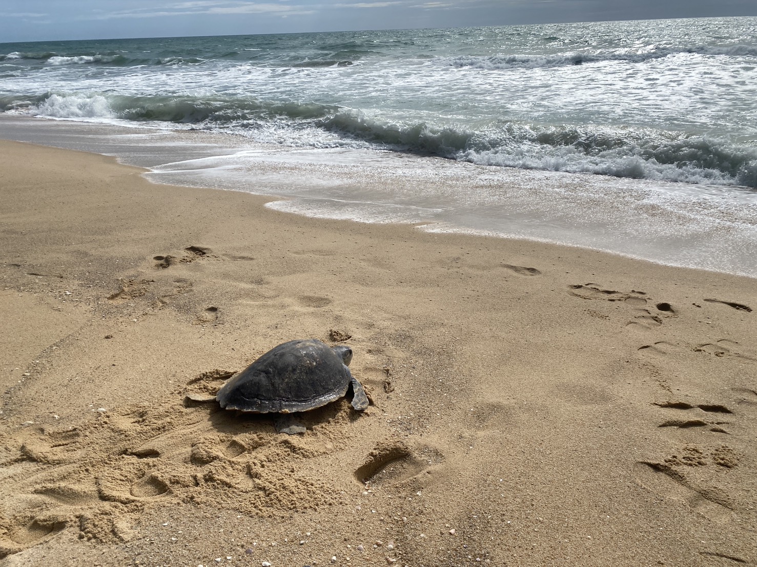 พังงา-นายอำเภอร่วมกับอุทยานฯ ปล่อยเต่าหญ้าคืนสู่หาดท้ายเหมือง หลังพบบาดเจ็บเกยตื้นรักษาหายดีแล้ว