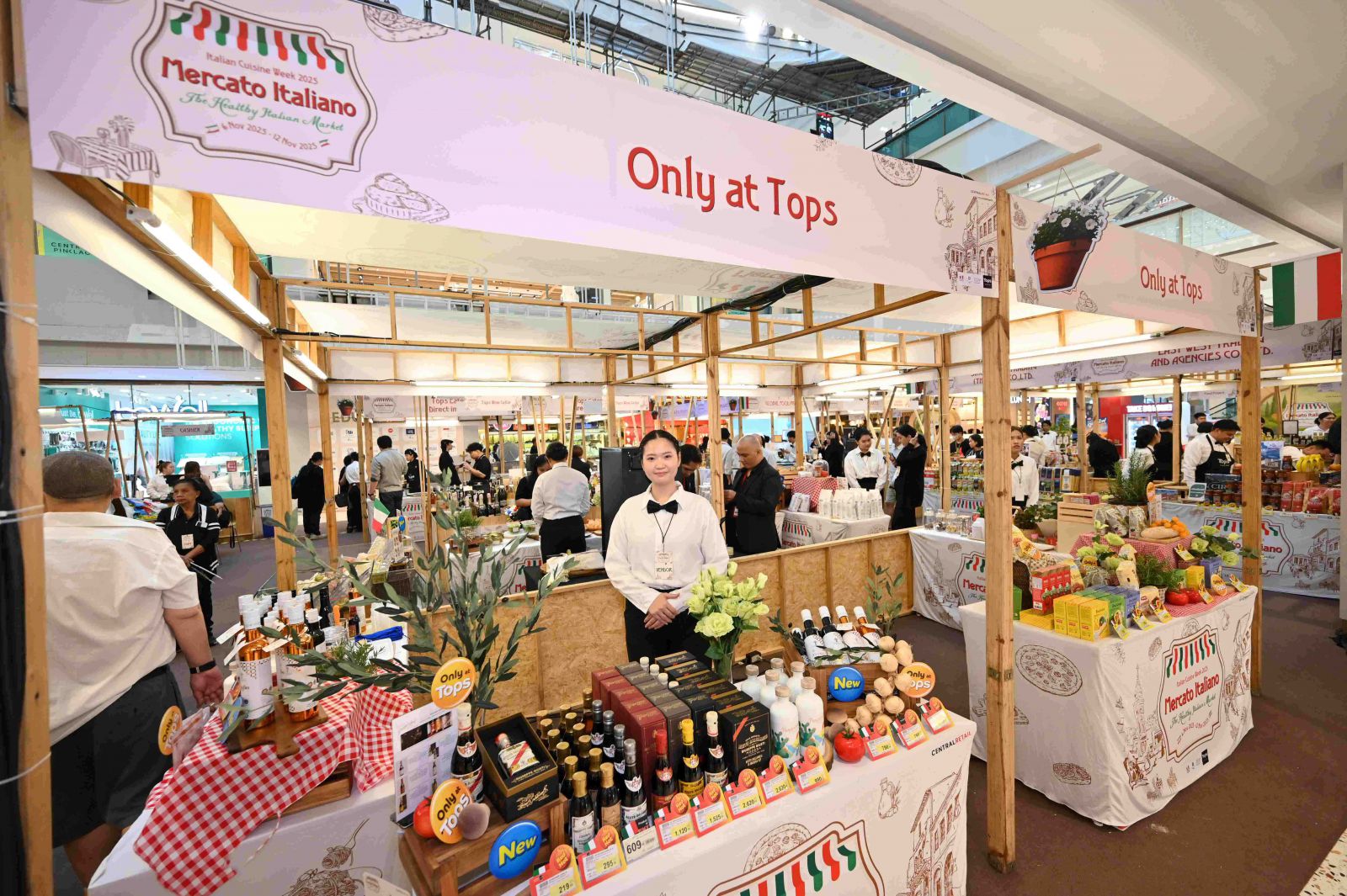ภายในงานได้นำเสนอ บูธไฮไลท์ ให้ทุกคนได้อิ่มอร่อยกับเมนูอิตาเลียนหลากหลายร้านดัง นำโดย พิซซ่าอบสดจาก TOPS EATERY หอมกรุ่น สไตล์อิตาเลียนแท้ พร้อม กาแฟพรีเมียมและแซนด์วิชสุขภาพสไตล์อิตาเลียน จาก THE BAKER ที่พร้อมเสิร์ฟความอร่อยแบบคลีนๆ ตลอดจน ขนม Canlolini Dessert จาก EUPHORIA Restaurant ที่ผสานความหอมหวานและเนื้อสัมผัสอันประณีต ปิดท้ายด้วย ไวน์อิตาเลียนชั้นเลิศจาก TOPS WINE CELLAR มาให้เลือกจับคู่กับจานโปรดได้อย่างลงตัว อีกทั้งยังสามารถเลือกช้อปสินค้าคุณภาพส่งตรงจากอิตาลีซึ่งคัดสรรโดย Only at TOPS, Sino-Pacific, Vouge Living และพันธมิตรอีกมากมายได้อย่างจุใจ