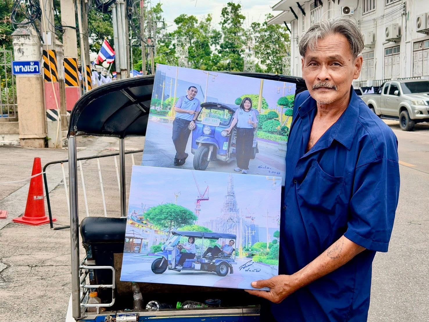 ลุงสมคิด กล่าวว่า “รู้สึกดีใจและเป็นเกียรติอย่างยิ่งที่ได้รับมอบภาพถ่ายรถตุ๊กๆพร้อมลายเซ็นต์จากทั้งสองท่านในครั้งนี้ ขับรถตุ๊ก ตุ๊กมา 40 กว่าปี ยังไม่เคยมี“ผู้ว่าราชการจังหวัดนั่งรถคันนี้เลย” ตนตั้งใจให้บริการนักท่องเที่ยวด้วยรอยยิ้ม เพื่อเป็นส่วนหนึ่งในการประชาสัมพันธ์การท่องเที่ยวของจังหวัดฉะเชิงเทราต่อไปอีกด้วย