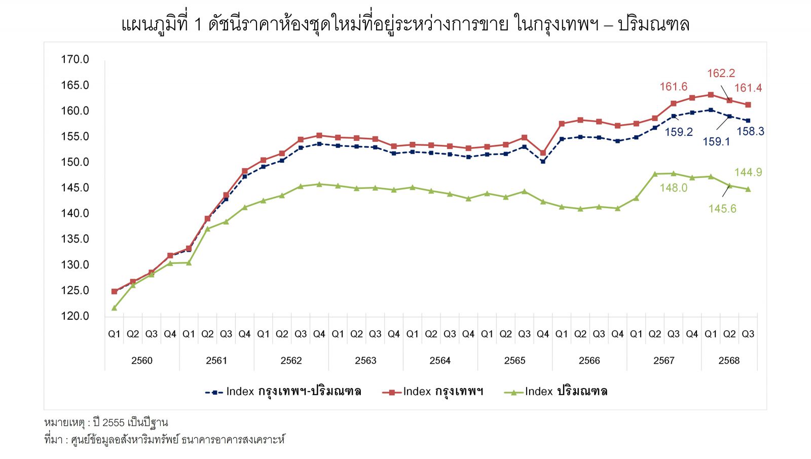ดัชนีราคาห้องชุดใหม่ที่อยู่ระหว่างการขาย ไตรมาส3/68กทม.-ปริมณฑลลดลง0.5%