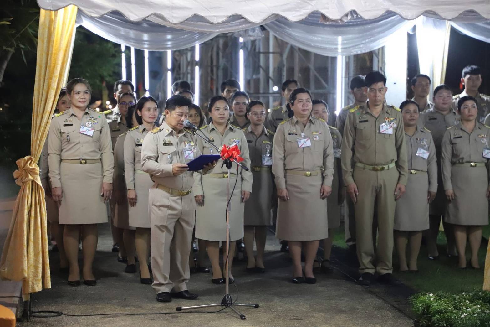 ในการนี้ นายอธิสรรค์ อินทร์ตรา ผู้ว่าราชการจังหวัดกาญจนบุรี นำคณะข้าราชการให้การเฝ้ารับเสด็จฯ พร้อมด้วยนางสาวคุลิกา สังข์สุวรรณ ผู้พิพากษาหัวหน้าคณะชั้นต้น พลตรีชนมากรณ์ ภิบาลชนม์ ผู้บัญชาการมณฑลทหารบกที่ 17 พลตำรวจตรีพศวีร์ เรืองภู่ ผู้บังคับการตำรวจภูธรจังหวัดกาญจนบุรี นายวุฒิพงษ์ สุภัควนิช นางพรรณวิภา ปิยัมปุตระ และนายสิทธิวีร์ วรรณพฤกษ์ รองผู้ว่าราชการจังหวัดกาญจนบุรี รวมถึงผู้อำนวยการโรงเรียนท่ามะกาวิทยาคม คณะครู เจ้าหน้าที่ และนักเรียนจำนวนมากร่วมเฝ้ารับเสด็จอย่างปลื้มปีติ