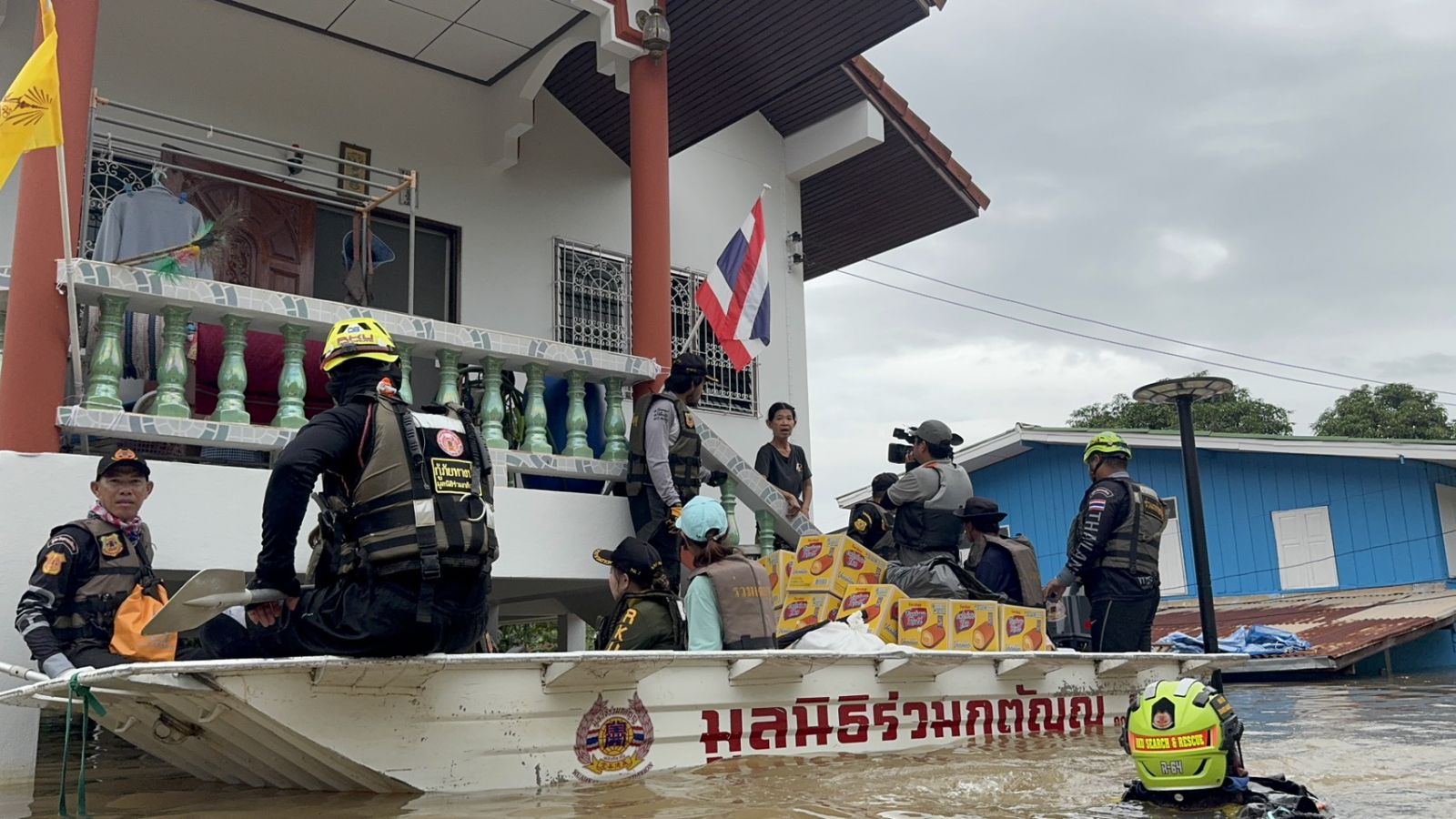 โดยทั้งหมดลงพื้นที่เปิดปฏิบัติการช่วยเหลือ ผู้ประสบภัยน้ำท่วม ภายในพื้นที่ หมู่ที่ 1 หมู่ที่ 2 ต.โรงช้าง อ.พรหมบุรี จ.สิงห์บุรี หลังจากที่เมื่อวันที่ 13 พ.ย.68 ได้เข้าช่วยเหลือผู้ประสบภัย หมู่ที่ 3 ต.โรงช้าง อ.พรหมบุรี จ.สิงห์ไปทุกครัวเรือนแล้ว จำนวน 250 ครัวเรือน บางครอบครัวติดอยู่ในบ้านไม่สามารถออกมาพักอาศัยที่ริมถนนได้ จึงได้ประสานกับ นางโสภี จันทวงศ์ นายก อบต.โรงช้าง ซึ่งได้ให้ข้อมูลของผู้ประสบอุทกภัย หมู่ที่ 1 หมู่ที่ 2 ทั้งหมด 250 ครัวเรือน ได้นำเรือท้องแบนบรรทุกข้าวสาร อาหารแห้ง น้ำดื่ม ยารักษาโรค เงิน 1,000 บาท และอาหารหมา แมว เข้าให้การช่วยเหลือผู้ประสบภัย