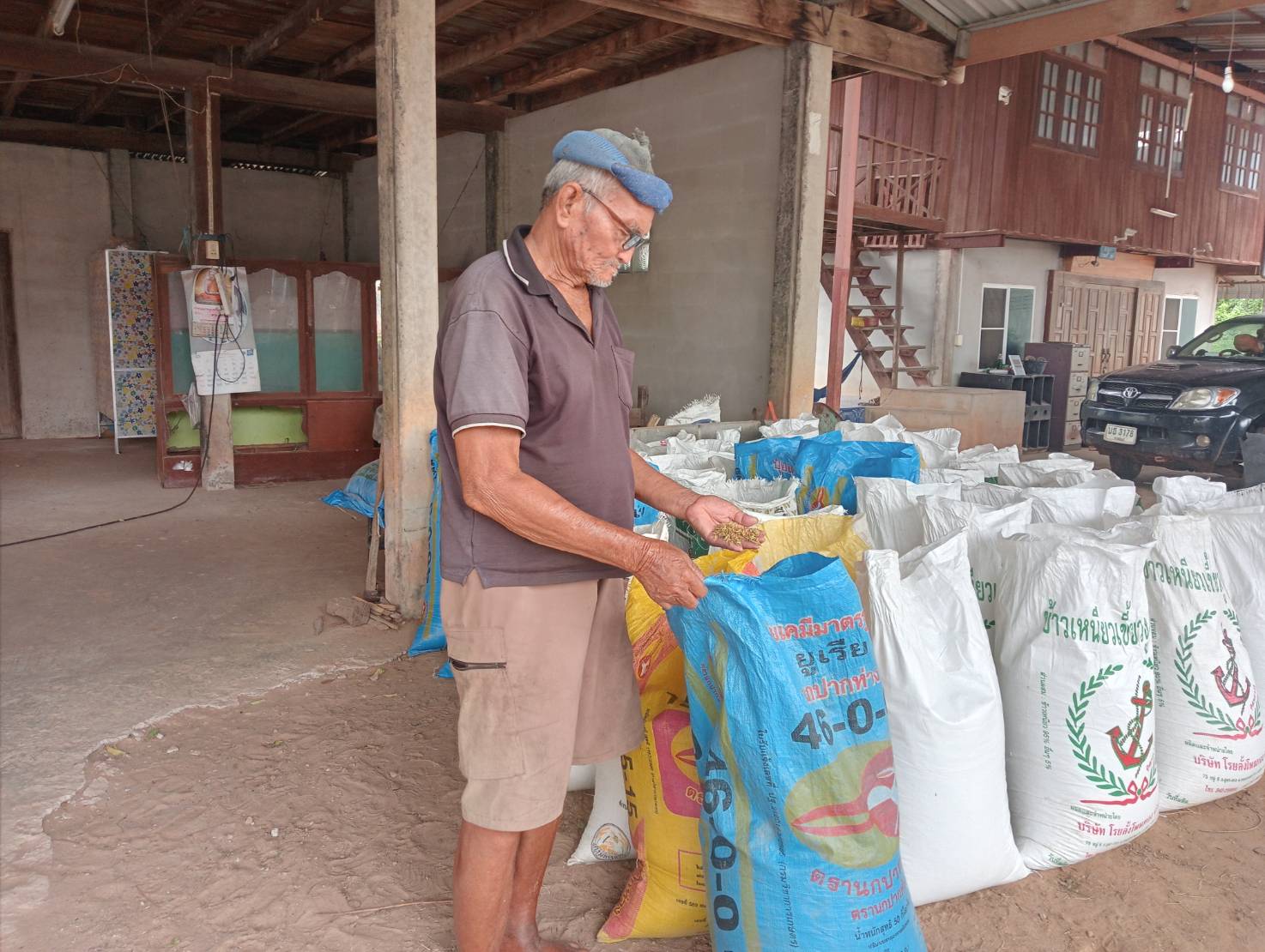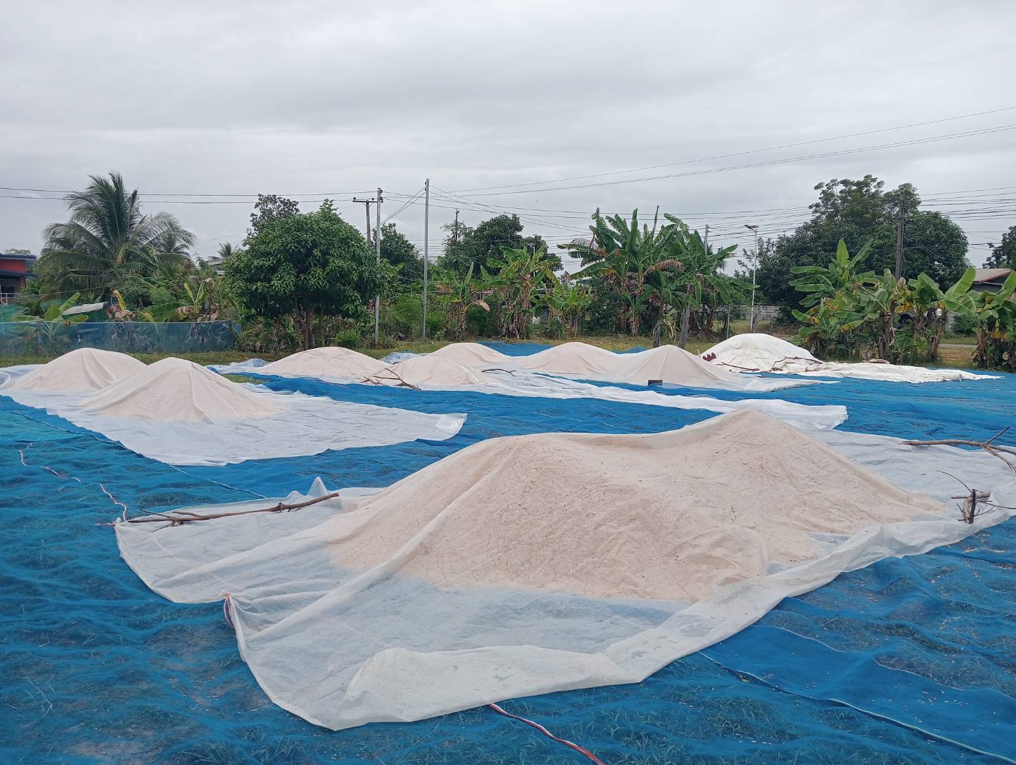 “อย่างไรก็ตาม ยังมีชาวนาอีกหลายคน ที่กำลังทำการผึ่งเมล็ดข้าวเปลือกเพื่อชะลอการขาย กลับต้องมาเจอกับฝนหลงฤดู ขนย้ายเมล็ดข้าวหนีไม่ทัน ก็ต้องทำการป้องกันโดยหาผ้ายางมาคลุมไว้ ส่วนใครที่มีแรงงานในครัวเรือนหลายคน ก็ช่วยกันขนย้ายข้าวหนีฝนได้ทันท่วงที ทั้งนี้ หากขนย้ายหนีไม่ทันก็จะทำให้เมล็ดข้าวได้รับความเสียหาย เช่น ถูกน้ำท่วม ถูกกระแสน้ำพัดเมล็ดข้าวเปลือกไหลหนี หรือหากเก็บใส่ถุงนานหลายวัน โดยเมล็ดข้าวเปลือกยังไม่แห้ง ก็อาจจะทำให้เมล็ดข้าวเปลือกเป็นสีดำ เกิดเชื้อราเพราะอับชื้น หรือเมล็ดที่แห้งแล้วเกิดการงอกได้ กลายเป็นเมล็ดข้าวด้อยคุณภาพ ไม่มีใครรับซื้อ” นายสุดใจกล่าว
