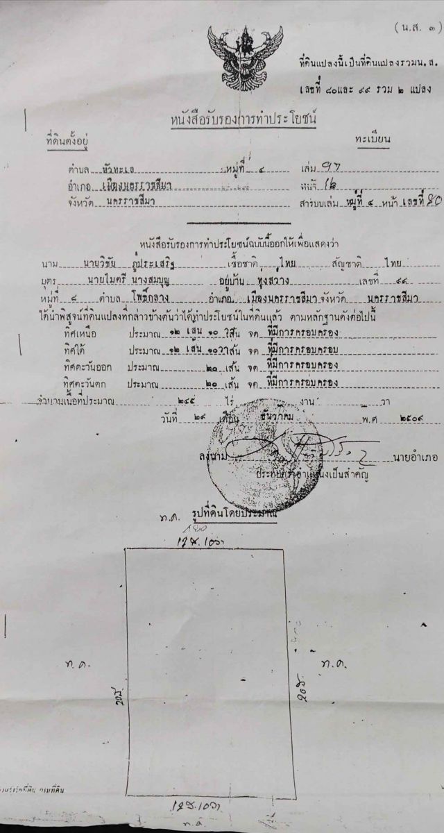 ซึ่งบุคคลดังกล่าวได้มาติดตั้งป้ายประกาศว่าเป็นที่ดินส่วนบุคคลห้ามผู้ใดมารุกล้ำเด็ดขาดพร้อมปิดประกาศว่าเป็นเจ้าที่ดินมีโฉนดเลขที่พร้อมจำนวน 5 แปลงเนื้อที่ประมาณ 60 กว่า และได้ดำเนินการแจ้งความกล่าวโทษครอบครัวตนในข้อหาบุกรุก ไว้ที่ สภ.เมืองนครราชสีมา ซึ่งเรื่องนี้ตนเองและคุณแม่ไม่เข้าใจในเมื่อพ่อของตนเองได้ซื้อที่กับนายสนั่น ไว้ตั้งแต่ปี 2503 และมีการออกเอกสารสิทธิ์ นส.3 เมื่อปี 2509ตนและครอบครัวก็ครอบครองที่ผืนดังกล่าวมาโดยตลอด ในสมัยคุณพ่อยังมีชีวิตอยู่ได้มอบที่ดินบางส่วนให้กับเทศบาลนครราชสีมา เพื่อทำเป็นสถานที่บำบัดน้ำเสีย แต่ปัจจุบันเป็นเขตรับผิดชอบของเทศบาลตำบลหัวทะเล อเมือง จ.นครราชสีมา ซึ่งตนเองและผู้เป็นแม่ได้ขอเข้าไปตรวจสอบเอกสารสิทธิ์ที่ผืนดังกล่าวกับสำนักงานที่ดินจังหวัดนครราชสีมา ว่าที่ดินของตนเองนั้นมีการออกเอกสารสิทธิ์ซับซ้อนที่ดินของตนเองหรือ ซึ่งเรื่องนี้หากไม่ได้ความกระจ่างจากสำนักงานที่ดินจังหวัดนครราชสีมา ตนเองจะให้ทนายความคำร้องขอความเป็นธรรมเพื่อให้ศาลเป็นผู้พิจารณาสอบหาข้อเท็จจริงในเรื่องที่แปลงนี้ต่อไป