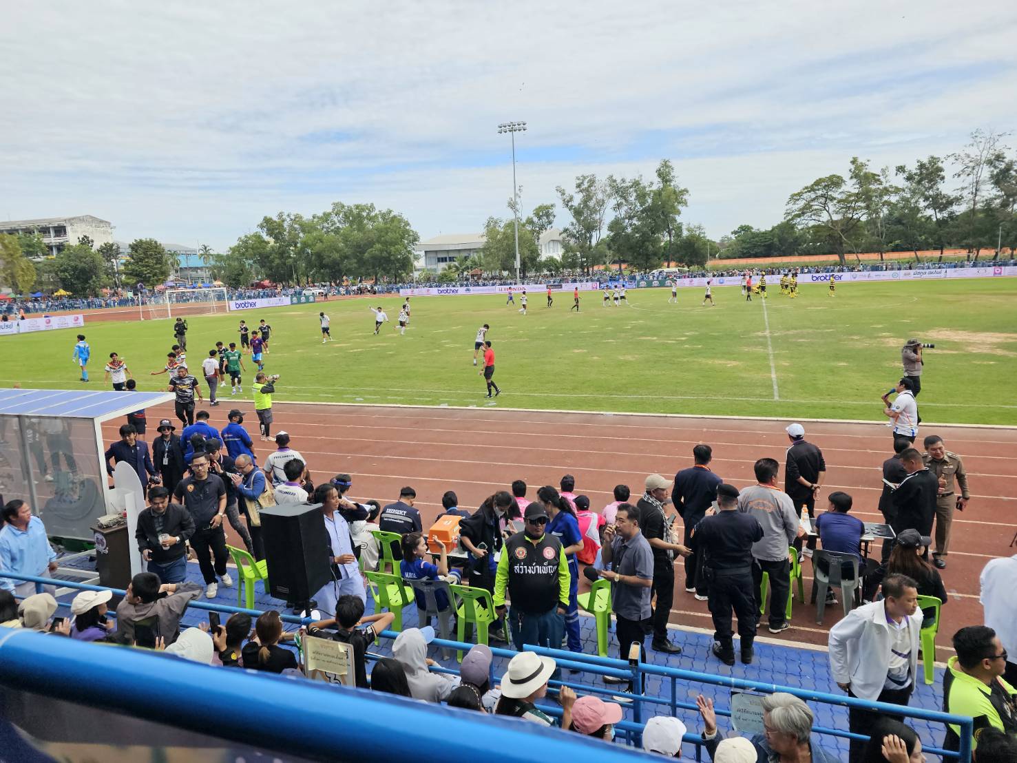 เวลา10.00 น.เป็นการแข่งขันฟุตบอลคู่เปิดสนาม “ทวารวดีเกมส์” ทีมหมอนทองวิทยา (จ.ฉะเชิงเทรา) ชุดเสื้อเหลือง-ดำ กางเกงดำ นำโดย อ.สกล เกลี้ยงประเสริฐ โค้ชผู้สร้างที่ขับรถขนฝันพาทีมคว้ารองแชมป์ฟุตบอล 7 คน ปี2025 ทีมสายมิตรศึกษา พลังท้องถิ่น (จ.ปราจีนบุรี) ชุดเสื้อขาว กางเกงเขียว นำทัพโดย นางสาวสรินทิพย์ หรือ สจ.เพชร บุตรเนียร สมาชิกสภาองค์การบริหารส่วนจังหวัดปราจีนบุรี อ.กบินทร์บุรี เขต 1(ส.อบจ.) ผู้จัดการทีมฯ (โค้ช) ท่ามกลางแฟนบอลแน่นสนาม-กองเชียร์แห่รับชมแน่นทั้งอัฒจันทร์ และบริเวณขอบสนามด้านนอกและร้านค้าอาหารเครื่องดื่มจำนวนมาก