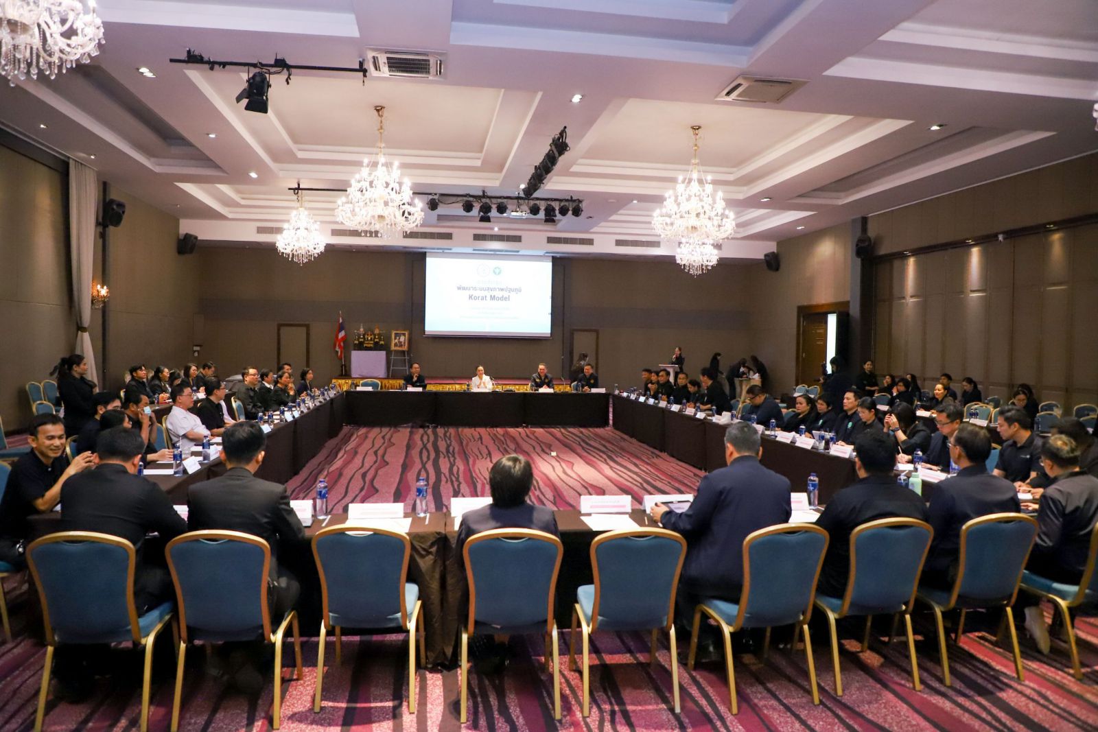 วันที่ 2 ธันวาคม 2568 ที่ โรงแรมเดอะริช #นางยลดา หวังศุภกิจโกศล นายก อบจ.นครราชสีมา, นพ.วิชาญ คิดเห็น นพ.สสจ.นครราชสีมา นายวีระชาติ ทุ่งไผ่แหลม รองนายก อบจ. นายวุฒิชัย วงค์ปัญโญ ปลัด อบจ. และ นพ.สุผล ตติยนันทพร ผู้เชี่ยวชาญด้านสาธารณสุข พร้อมด้วย ผู้อำนวยการโรงพยาบาลประจำอำเภอ(รพช.) 32 แห่ง, สำนักงานสาธารณสุขจังหวัด และ หน่วยงานสาธารณสุข ใน จ.นครราชสีมา ที่เกี่ยวข้อง ร่วมประชุมแนวทางขับเคลื่อนการพัฒนาระบบสุขภาพปฐมภูมิ “Korat Model” เพื่อหารือการพัฒนาระบบสุขภาพปฐมภูมิ ไม่ว่าจะเป็นการพัฒนามาตรฐานบริการ การจัดบริการระบบสุขภาพ การจัดการทรัพยากรในระบบสุขภาพ ระดมแนวคิดออกแบบงานด้านสาธารณสุขอย่างมีส่วนร่วม โดยเฉพาะด้านงานโรคไม่ติดต่อเรื้อรัง(NCDs) งานสุขภาพช่องปาก รวมถึงการพัฒนาและแลกเปลี่ยนระบบข้อมูลสารสนเทศด้านสาธารณสุข นำมาสู่การจัดตั้งคณะกรรมการขับเคลื่อนในระดับจังหวัดและคณะกรรมการขับเคลื่อนในระดับอำเภอ เพื่อเกิดการขับเคลื่อนงานร่วมกันอย่างยั่งยืน