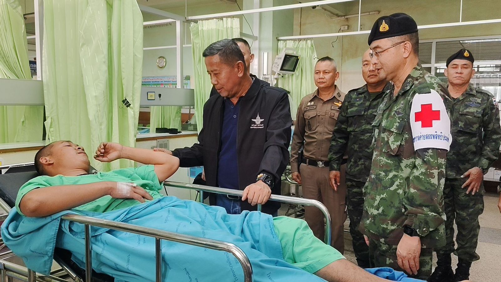 รมช.กห.ลงพื้นที่รพ.กันทรลักษ์รุดเยี่ยม ทหารบาดเจ็บชายแดนไทย–กัมพูชา