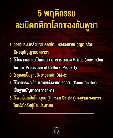 “รมว.กห.” ชี้ชัด 5 พฤติกรรมกัมพูชาละเมิดกติกาโลก