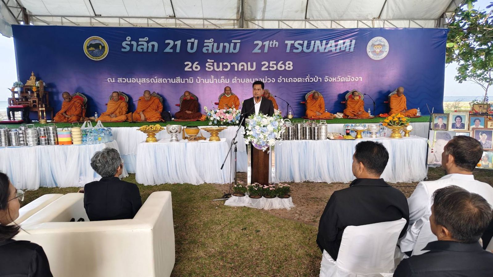 ผู้สื่อข่าวรายงายว่าที่อนุสรณ์สถานสึนามิบ้านน้ำเค็ม ต.บางม่วง อ.ตะกั่วป่า จ.พังงา มีการจัดกิจกรรมรำลึกครบรอบ 21 ปี ในวันที่ 26 ธ.ค. 2567 จากกรณีเหตุการร์คลื่นยักษ์สึนามิพัดถล่ม 6 จังหวัดอันดามัน ภูเก็ต พังงา กระบี่ ระนอง ตรัง สตูล โดยมีนายดำรง ฉิมทับ นายอำเภอตะกั่วป่า เป็นประธานวางดอกไม้ และองค์การบริหารส่วนตำบลบางม่วง พร้อมด้วยหัวหน้าส่วนราชการ แขกผู้มีเกียรติ และเครือข่ายผู้ประสบภัยสึนามิเข้าร่วม ซึ่งเหตุการณ์ครั้งนั้นได้ทำให้มีผู้เสียชีวิต และสูญหายจำนวนมาก รวมทั้งบ้านเรือนประชาชน ห้างร้าน สถานประกอบการต่างๆ ได้รับผลกระทบ