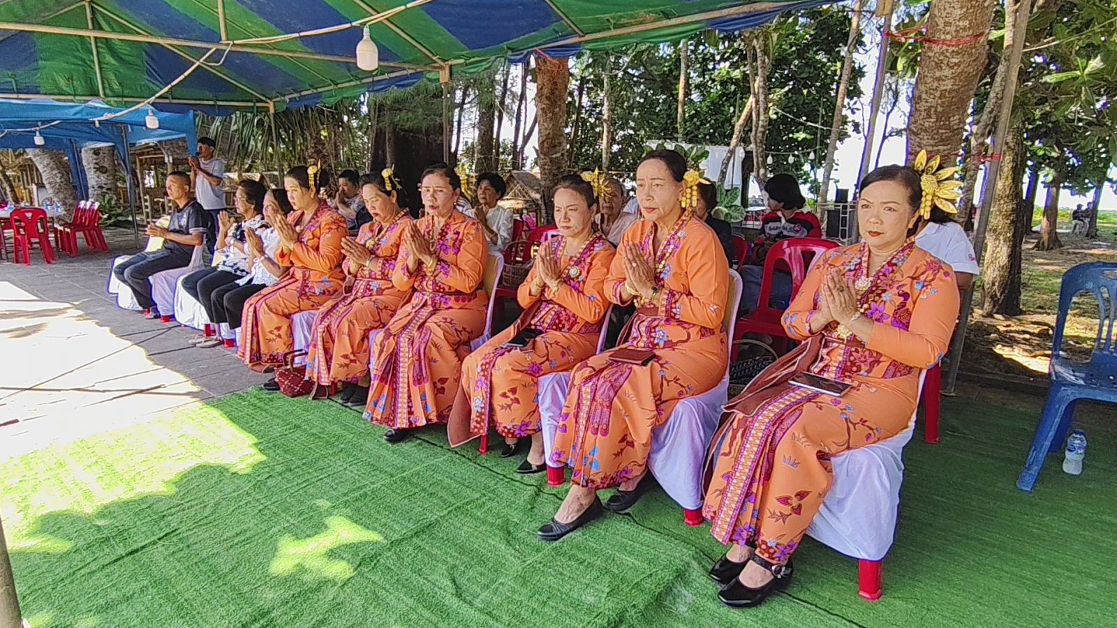 สำหนับประเพณี ดังกล่าว เป็นประเพณีดั้งเดิมที่ทำสืบต่อกันมานานนับร้อยปีทุกวันขึ้นปีใหม่ ตามความเชื่อที่ว่าจะสามารถช่วยปัดเป่าสิ่งอัปมงคล ชั่วร้ายออกไปจากตัวเอง และหมู่บ้าน จะสร้างความสงบสุขร่มเย็น ซึ่งได้นิมนต์พระอาจารย์ขจร อภินันโท หัวหน้าที่พักสงฆ์บ่อหินแร่ ต.บางม่วง อ.ตะกั่วป่า จ.พังงา ซึ่งเป็นพระนักเทศน์ที่มีชื่อเสียง พร้อมพระภิกษุจำนวน 3 รูป ร่วมสวดมนต์เพื่อปัดเป่าสิ่งชั่วร้ายให้ออกไปจากครอบครัวและหมู่บ้าน