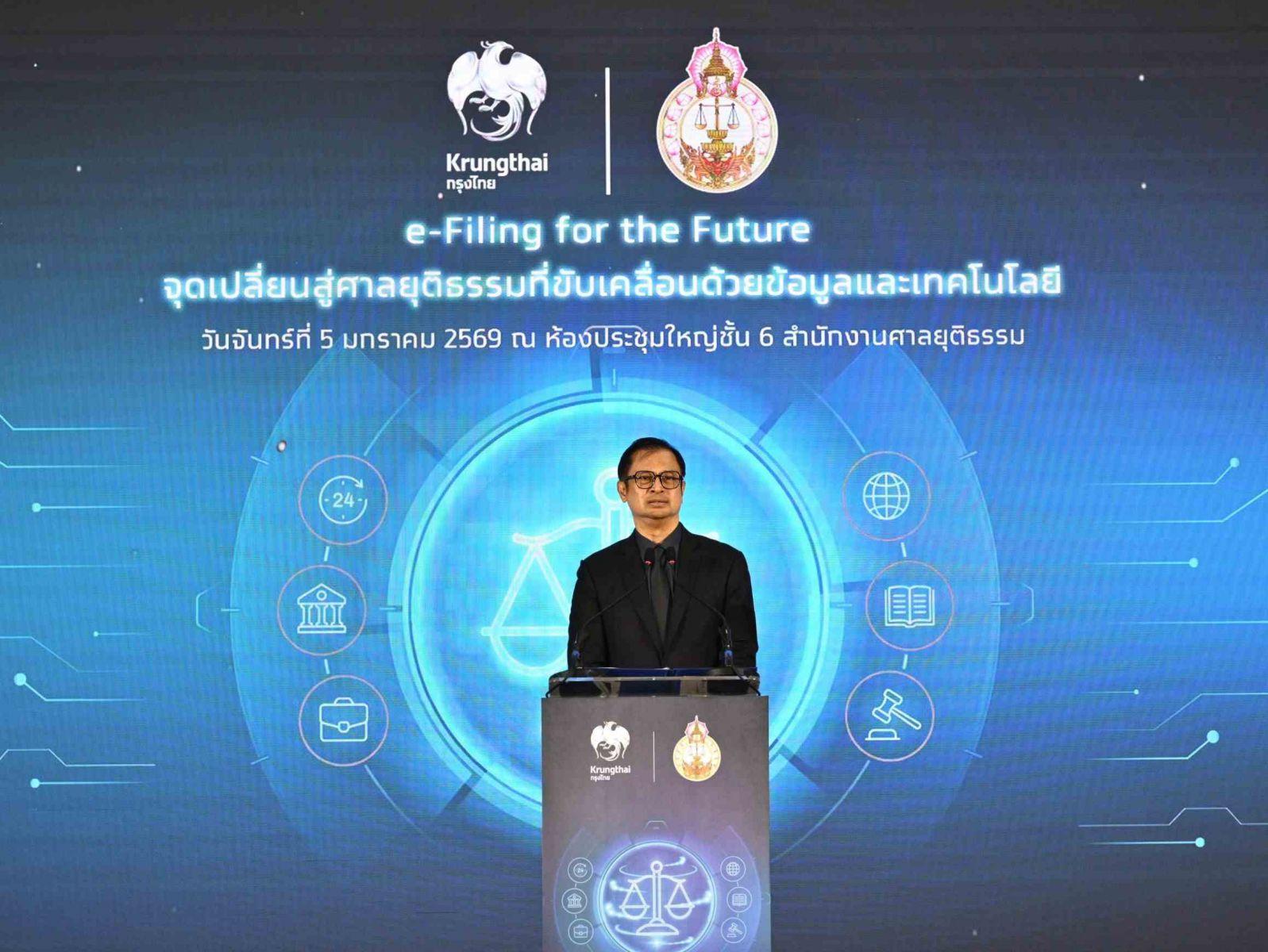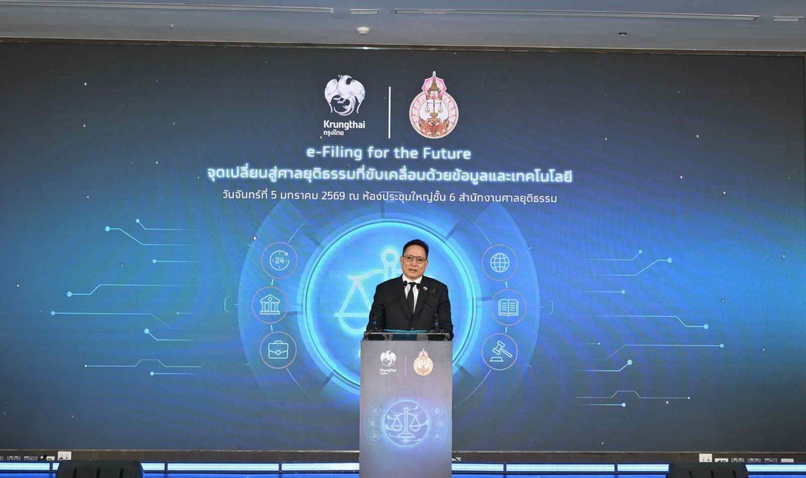 เมื่อวันที่ 5 มกราคม 2569เวลา 13.30 ณ ห้องประชุมใหญ่ชั้น 6 อาคารสำนักงานศาลยุติธรรม ถ.รัชดาภิเษกนายธีรทัย เจริญวงศ์ เลขาธิการสำนักงานศาลยุติธรรม พร้อมด้วยนายผยง ศรีวณิช กรรมการผู้จัดการใหญ่ ธนาคารกรงุไทย จำกัด (มหาชน) ได้เข้าร่วมงาน “e-Filing for the Future: จุดเปลี่ยนสู่ศาลยุติธรรมที่ขับเคลื่อนด้วยข้อมูลและเทคโนโลยี” ซึ่งจัดขึ้นเพื่อเป็นหมุดหมายสำคัญในการยกระดับพัฒนาระบบรับส่งอิเล็กทรอนิกส์ (e-Filing)ของศาลยุติธรรม